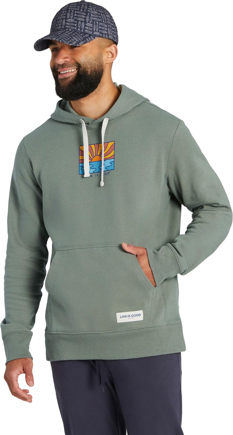 Title: Life is Good - Mens Sun Ocean Icon Simply True Fleece Hoodie, Color Moss Green, Size: Medium. Product Type: Clothing, Shoes & Jewelry