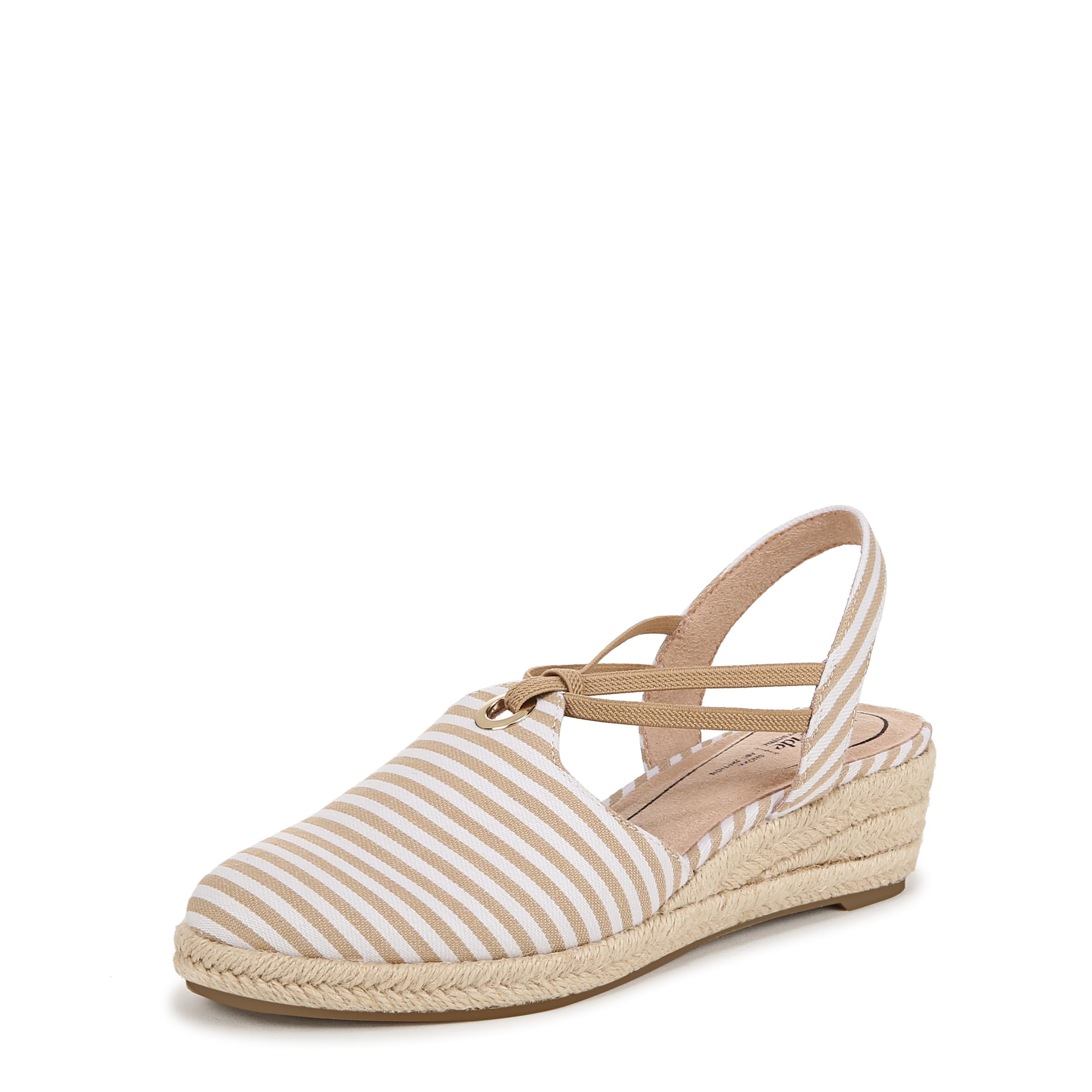 Women's wedge sandal with trusted Soft System comfort technology for unmatched cushion, support, and flexibility in every pair Shock absorption with pressure distribution and superior cushioning for an effortless feel Low wedge and traction sole for extra stability Slingback sandal with just Right Height 1 3/4 inch wedge heel Comfortable women’s espadrille wedges with nautical-inspired design