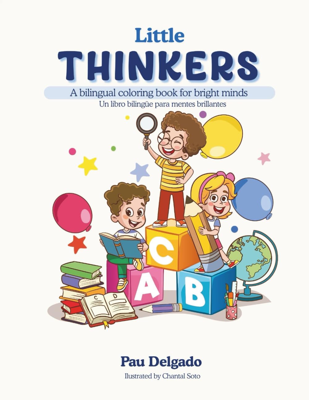 Learning and having fun has never been easier! Little Thinkers is a charming bilingual coloring book (Spanish–English) designed to help young children learn vocabulary, values, and daily routines while developing their creativity. With large, adorable illustrations, this book is perfect for: 🌟 Children ages 2–7 who are learning a second language. - 🎨 Developing fine motor skills, focus, and coordination. - 📚 Introducing basic and useful English and Spanish words naturally. Each page combines easy-to-color drawings with simple, everyday vocabulary—perfect for practicing at home, in the classroom, or as a family activity. Inside this book you will find: ✅ Daily routines like wake up / despertar or brush teeth / cepillarse los dientes. ✅ Family and friendship scenes to teach values such as respect, gratitude, and cooperation. ✅ Fun activities like sports, games, and creative moments. 💡 Little Thinkers is more than just a coloring book—it’s an educational tool that connects kids, parents, and teachers in a colorful learning journey. 🎁 Perfect gift for birthdays, holidays, language classes, or simply to enjoy a fun and educational moment.