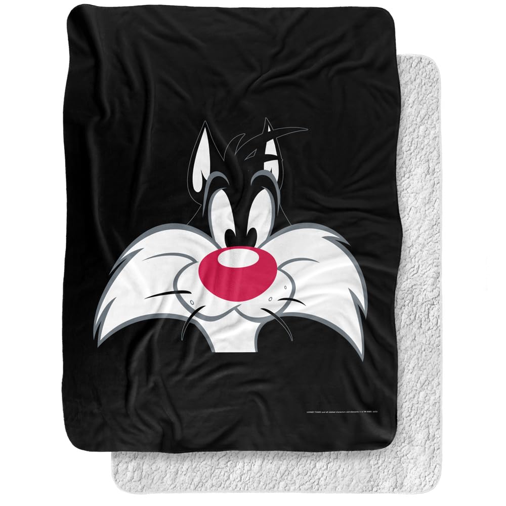 LOONEY TUNES SILKY TOUCH SHERPA BACK SUPER SOFT THROW BLANKET – This dual sided sherpa fleece throw blanket with 240gsm fleece face and 180gsm plush sherpa reverse is warm and cozy, lightweight, breathable, and durable. It has an unfolded size of 60” x 80” making it a perfect for sleeping, napping on the sofa or couch, traveling, or snuggling up when watching TV. SHRINK and FADE RESISTANT – This comfy and fluffy sherpa blanket made of 100% polyester is fade and stain resistant. Hand-printed in the USA using a dye sublimation process, the designs have amazing color vibrancy and are long lasting. Printed one-side only. EASY CARE – Our products are machine washable. Wash on gentle cycle and tumble dry on low heat. Do not use bleach. Disclaimer: Blanket may arrive flat due to the printing process. We advise that you wash it before the first using to remove the excessive lint left over during the manufacturing process. OFFICIALLY LICENSED - Each of our designs are 100% officially licensed. Our fan-favored imagery is created by our brilliant in-house team of graphic artists, and is often hand-drawn and illustrated, adding unique detailing to each design. PERFECT CHRISTMAS GIFT: Snuggle up in holiday style with this cozy pop culture blanket - the ultimate Christmas gift for fans of movies, TV shows, comics, music, and gaming. Whether you're looking for a festive Secret Santa gift, a stocking stuffer, or a thoughtful present under the tree, this blanket brings warmth and fandom together. Ideal for cozy winter nights, Christmas movie marathons, or decorating your holiday space, it's a must-have for anyone who loves to relax in comfort and style. Looney Tunes Blanket, 60"x80", Sylvester Sherpa Back Super Soft Throw