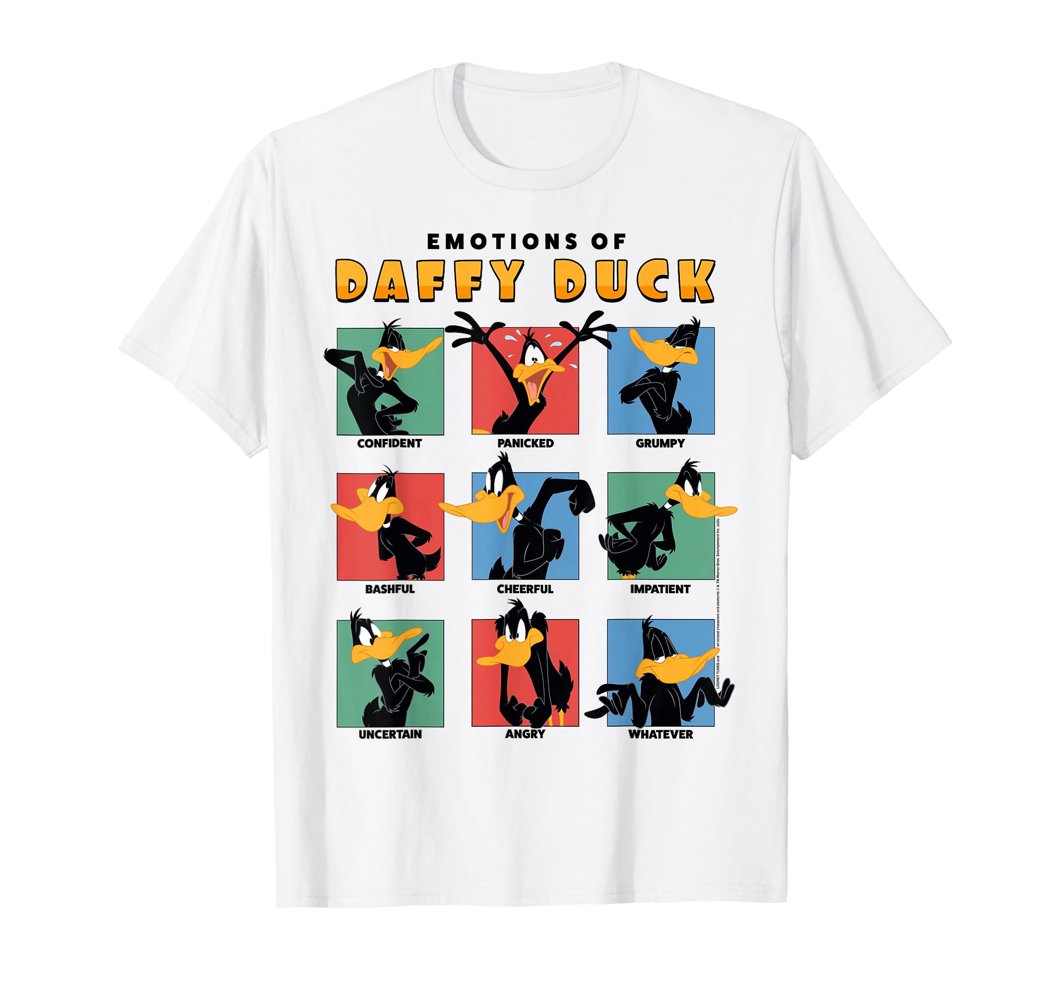 Daffy Duck Emotions design. Officially Licensed Looney Tunes Apparel 20WBLT00033A-001 Lightweight, Classic fit, Double-needle sleeve and bottom hem