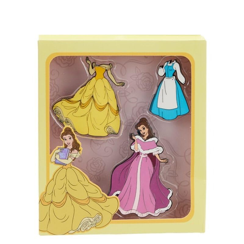 Enamel-fill pin is approximately 1.5-inches tall and features gunmetal hardware and signature Loungefly/Funko crown debossing. This pin is an officially licensed Disney product. Peek inside the enchanted Wardrobe to see what Belle might wear to dinner! With this Loungefly Disney Beauty and the Beast Belle Magnetic Paper Doll Pin Set, Bell has some lovely options! The base for this pin set has Belle dressed in super cute, modest undergarments. To change her look, you can select one of the magnetized dresses to fit perfectly and securely in place. Belle has a choice of her signature golden ball gown (which comes with a book for her to read), the red hooded dress she wears when she notices something she hadn’t seen before in the Beast, and her blue and white peasant dress. With so many options, you can change up your own look in classic Disney style. Enamel-fill pin is approximately 1.5-inches tall and features gunmetal hardware and signature Loungefly/Funko crown debossing. This pin is an officially licensed Disney product.