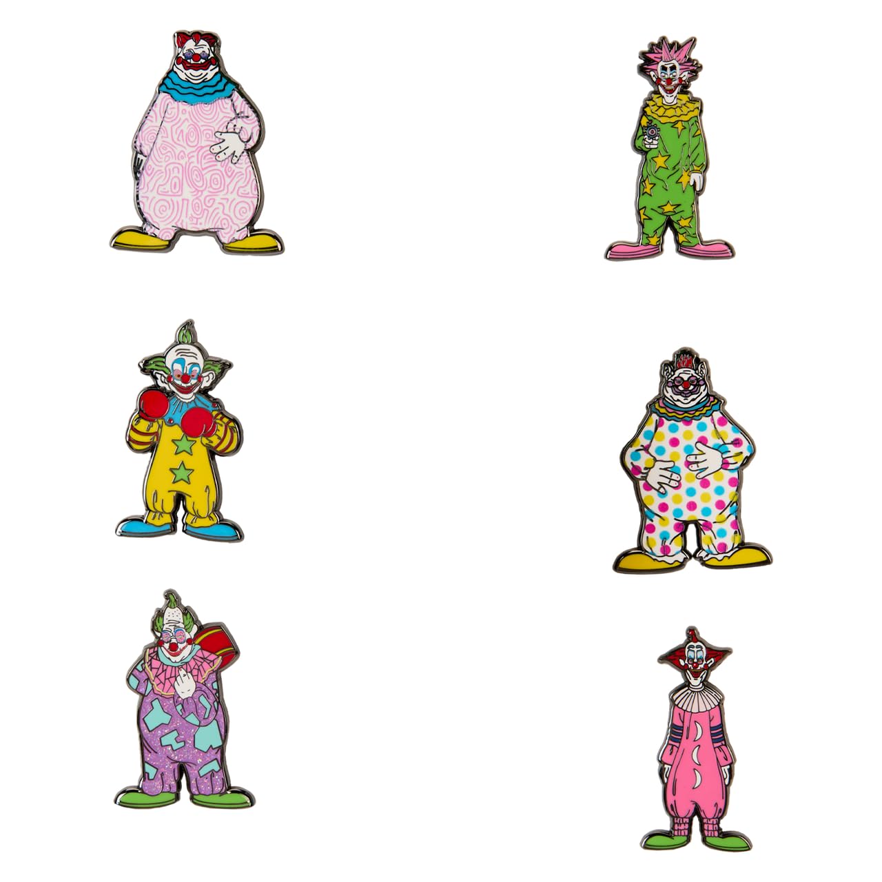 One Random enamel pin. Officially Licensed product. Each enamel pin is approximately 1.5-inches tall and features gunmetal-colored hardware. The signature Loungefly/Funko crown debossing appears on the back. You are purchasing a Loungefly Killer Klowns from Outer Space Mystery Box Pin [ONE RANDOM PIN] Each enamel pin is approximately 1.5-inches tall and features gunmetal-colored hardware. The signature Loungefly/Funko crown debossing appears on the back. Please note: We cannot accept requests for specific items. Item selection is random, as each piece is in blind packaging. You may receive duplicate figures. Chase variants are shipped at random. Receiving a chase with purchase is not guaranteed.