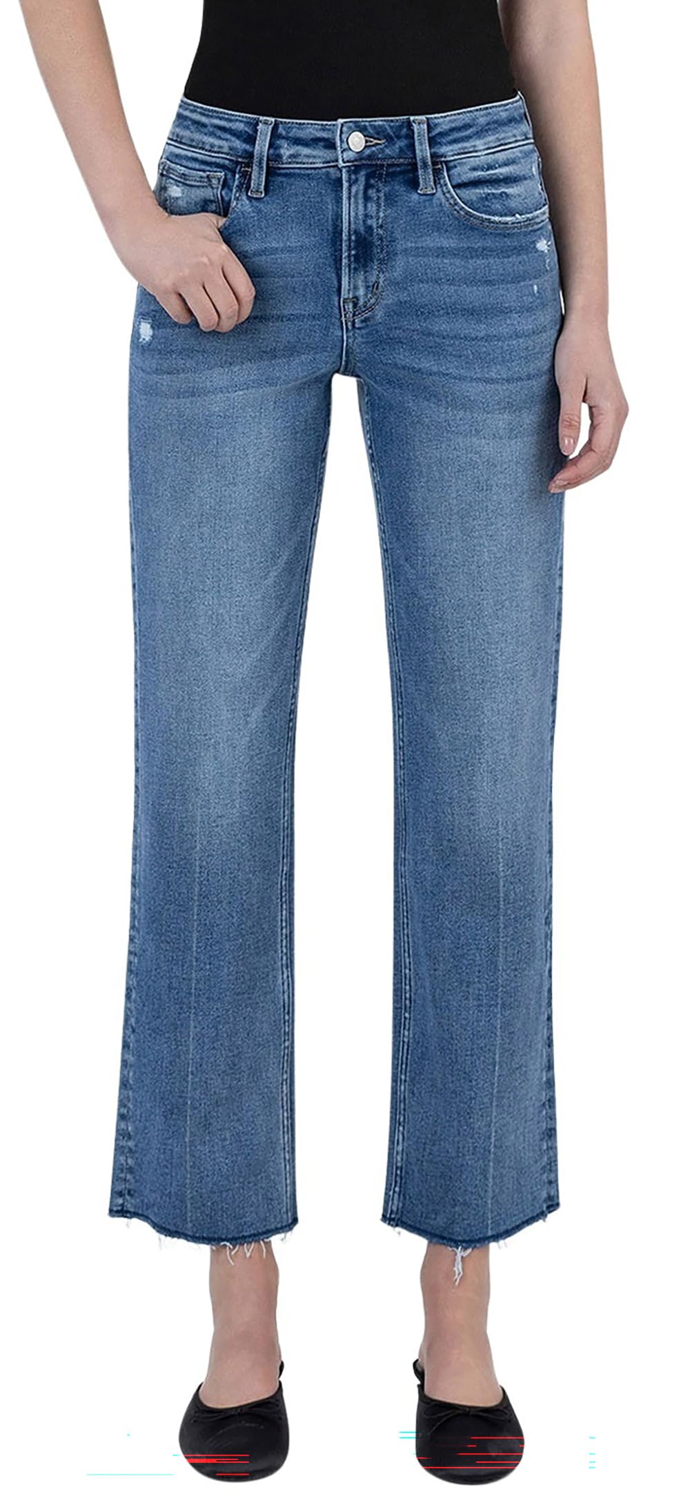 Lovervet by VERVET Women's High Rise Raw Hem Ankle Straight Jeans