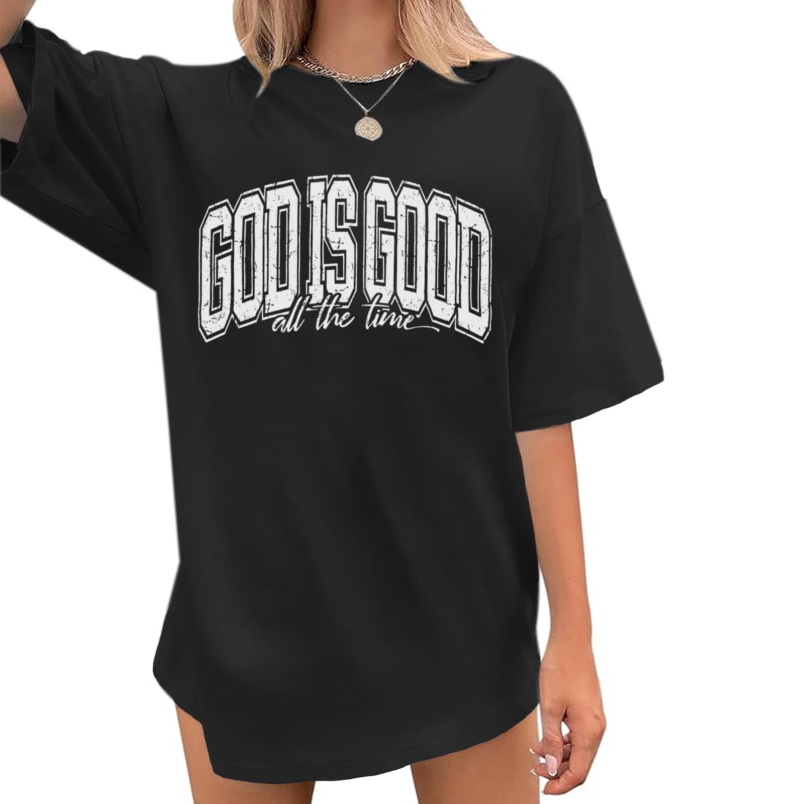 Lubpow Christian T Shirts for Women God is Good Shirt Oversized Jesus Religious Faith Inspirational Tshirts Bible Verse Tops