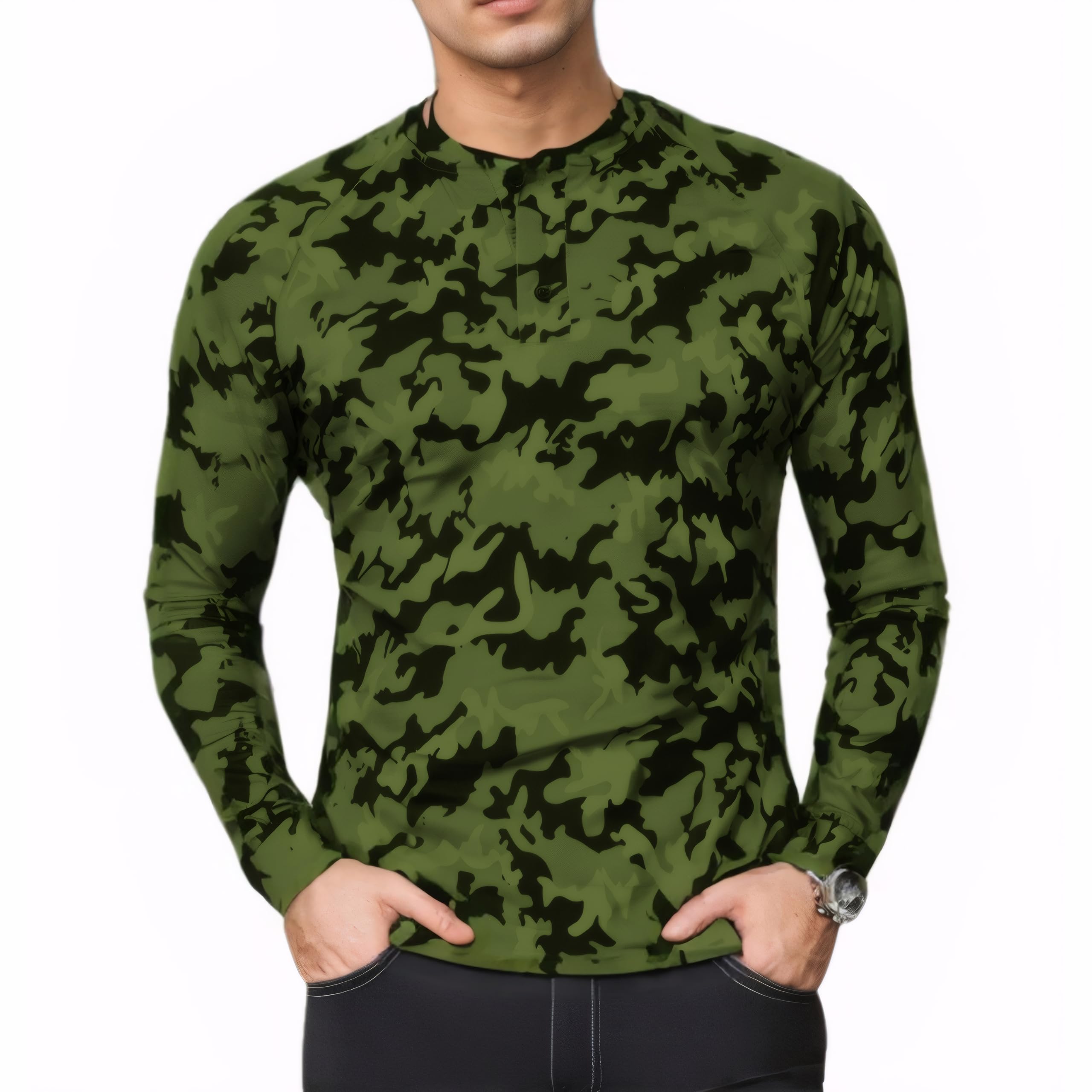Three Buttons & Camo Print Design: adds a touch of class to the shirt, making it versatile for both casual and dressier occasions.