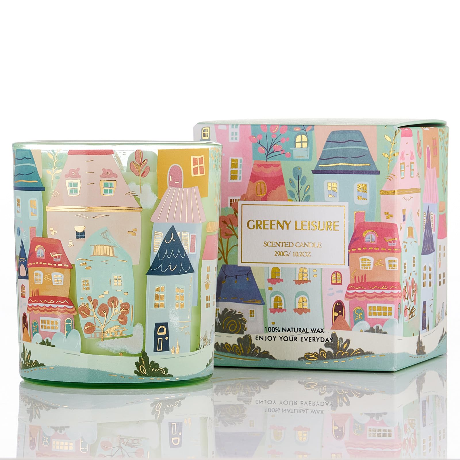 【Burn Quality】: Made with soy wax and infused with premium essential oils, our 10.2-ounce candle offers a clean, even burn. Enjoy a 60 hours lasting, smoke-free experience that fills your space with rich fragrance 【CharmArch】: Every CharmArch candle, a snippet of a fairy-tale town, boasts fluid, playful hand-drawn architecture. Its hues grace the candle's surface warmly. Ignite it, and as the cozy flame flickers, a gentle aroma fills the air, evoking the essence of home. 【Non-Toxic and Safe】:M&Sense candles are paraffin-free, phthalate-free, and paraben-free, ensuring a safe and toxin-free aromatic experience for you and your loved ones 【Housewarming Gift】: CharmArch's meticulously crafted townscape designs showcase exquisite attention to detail and quality craftsmanship. Choose from MODERN CITY for a sleek, urban ambiance, GREAT WISHES to convey heartfelt blessings, NEW HOME to celebrate fresh beginnings, or GREENY LEISURE to bring a serene touch of nature into your home. Each fragrance captures the essence of its theme, elevating your living space with delightful aromas 【About M&Sense】: Since our establishment in 2009, M&Sense has been dedicated to crafting premium candles that merge quality with design; Utilizing natural wax and premium essential oils, our candles are created in a variety of stylish designs to cater to a wide range of fragrance preferences, enhancing the elegance of your living space