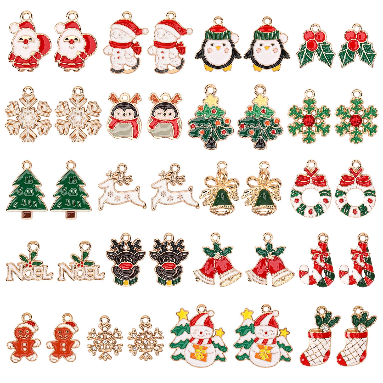 Package Content-You will receive 40 pieces 20 pairs of Christmas charms, totaling 20 styles, 2 for each style, with rich patterns, different shapes and vivid colors to meet your jewelry making needs and other decorative needs during Christmas Holiday Theme Charms-20 styles of xmas charms, each Christmas charms for jewelry making is an ideal embodiment of the holiday atmosphere, including Santa Claus, Christmas tree, snowflake, snowman, bell, gingerbread man, reindeer, garland and more, vivid and full of fun. Carefully designed, each snowflake charms has a strong traditional Christmas elements, creating a warm festival atmosphere Reliable Materials- Gold enamel charms are made of good-quality alloy and plated with colored enamel, which has good durability and not easy to fade. Each gold enamel charms is carefully carved to make each Christmas bracelet charms vivid Widely Used- Christmas charms are not only suitable as necklace pendants, but can also be easily integrated into various DIY handmade ornaments such as bracelets, earrings and key chains, adding infinite creativity to your Christmas dress. 2-piece for each style, convenient for you to share holiday fun with friends and family, or to create a symmetrical and layered personal collocation Unlimited Creativity-The design of Christmas charms is flexible, which is very suitable for DIY lovers to be creative. Whether you want to make a pair of unique Christmas earrings or an eye-catching necklace, Christmas charms for jewelry making can be easily handled, creating your own DIY lucky charm Diverse Styles From the classic Santa Claus, snowman, Christmas tree, bells to lovely animals, reindeer and snowflakes, each xmas charms carries a different Christmas story to satisfy all your imagination of holiday decoration. Suitable Size The Christmas charms are appropriate in size, neither too heavy nor too small. Christmas charms for jewelry making can be hung on the Christmas tree, door frame or anywhere you want to add festival atmosphere, and snowflake charms can become a bright eye. Ideal Gift Christmas bracelet charms can also be sent to family and friends as holiday gift to convey the warmth and happiness. Application: Decorate the Christmas Tree: Hang these xmas charms on the Christmas tree to form a beautiful landscape. Hand-Decorated: Christmas charms for jewelry making can be hung in the window, porch or living room at home to add festival atmosphere. Unique Gift: As a holiday gift to relatives and friends, gold enamel charms will definitely make them feel your heart and enthusiasm. Specifications: Material: alloy Style: Santa Claus, snowman, bell, Christmas tree, elk, snowflake, gingerbread man, etc Quantity; 20 pairs /40/ piece