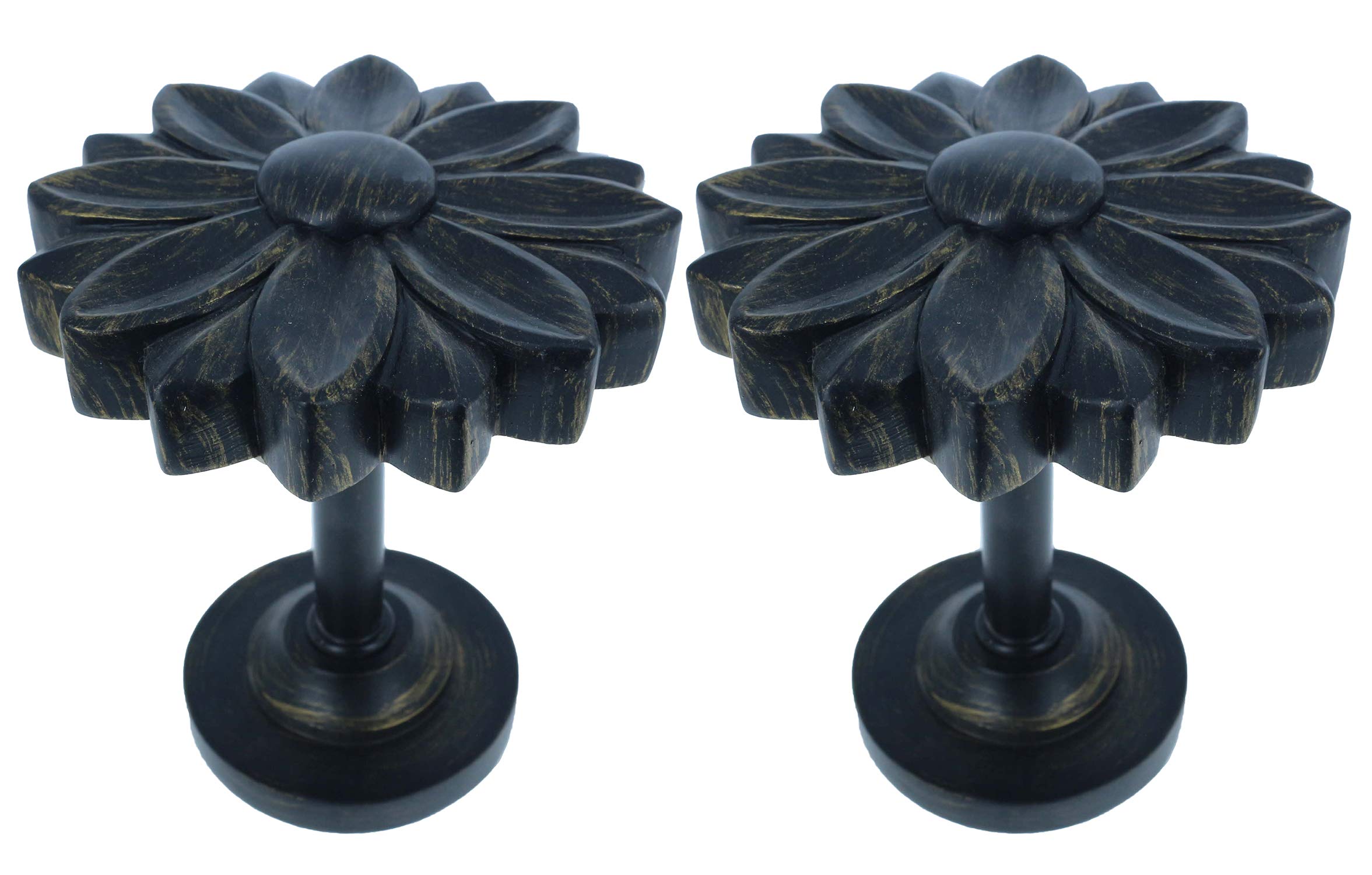 MERIVILLE Set of 2 Blossom Window Drapery Medallion Holdbacks, Curtain Tiebacks, Wall Hook, Tassel Holder, Burnt Gold