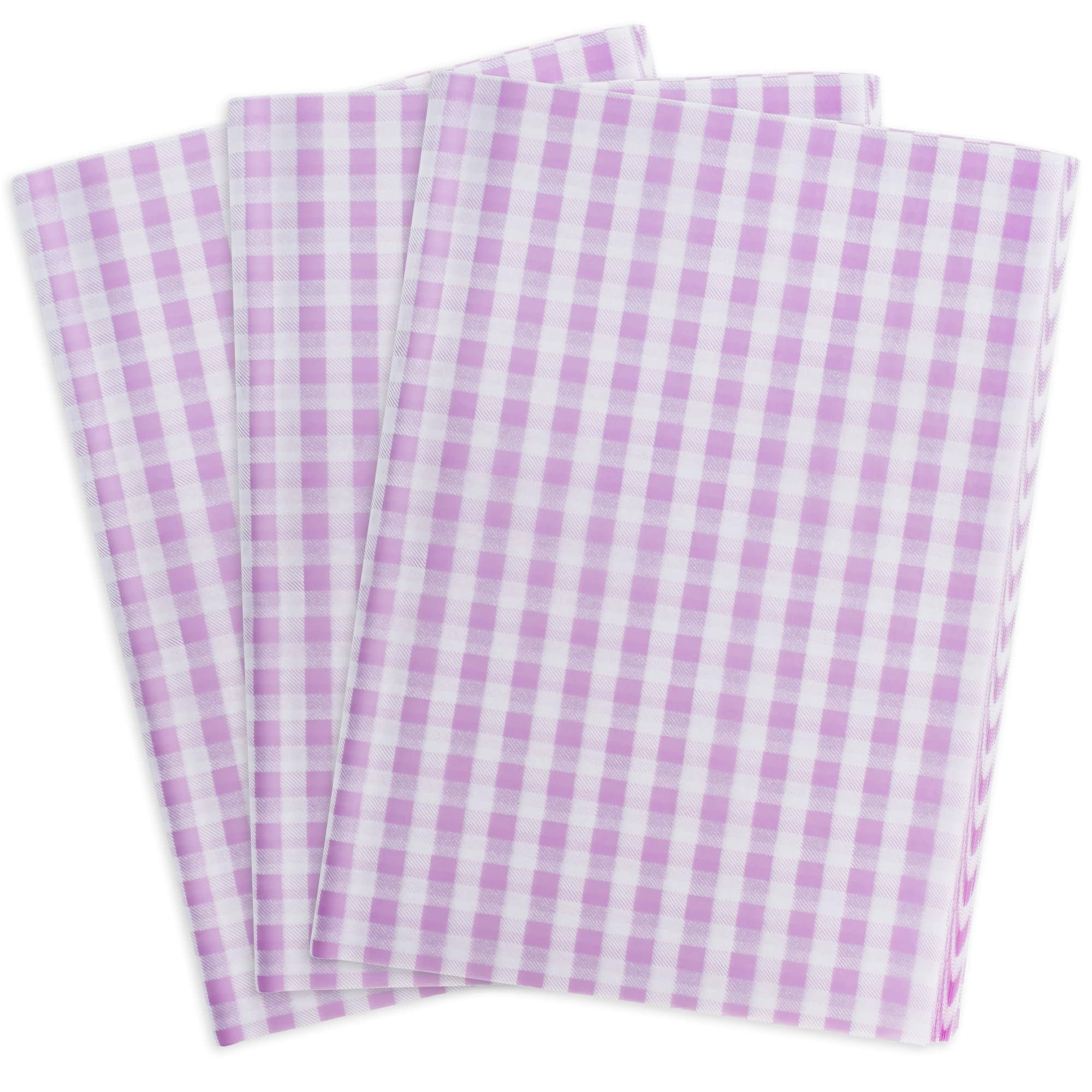 Package Includes:60 sheets purple checkered tissue paper bulk.Size:19.7 inch x 13.8 inch.Remind you that this size tissue may NOT be suitable for packing large size gifts. Purple Checkered Design:The tissue paper has white background and purple checkered pattern on it. It's very beautiful.Perfect checkered tissue paper for gift bags.Please NOTE that these purple checkered gift tissue paper are printed on ONE SIDE. Paper Material:The purple checkered tissue paper is made of high quality paper, environmentally friendly . High Quality:The purple checkered tissue paper is made of high quality paper,not easy to tear. The purple checkered is clear and bright, suitable for wrapping all kinds of small gifts and business packaging. Widely Use:You can use these checkered tissue paper to wrap your Birthday,Mother's Day,Thanksgiving,Baby Shower,Christmas and New Year gifts.You can also DIY them into paper poms and other party decorations. Features: 60 sheets white with purple checkered pattern tissue paper,so pretty. The tissue paper can be used with a gift bag or individually. Very suitable for festivals, such as Fall, Thanksgiving, Christmas, New year. It can also be used for birthdays,baby shower,weddings and various party gifts.It can also be used to make handicrafts like pompoms. Specifications: Size: 50 x 35cm (19.69" x 13.78") Styles: White with purple checkered pattern Material: Eco-friendly paper Package includes: 60 x White with purple Checkered Pattern