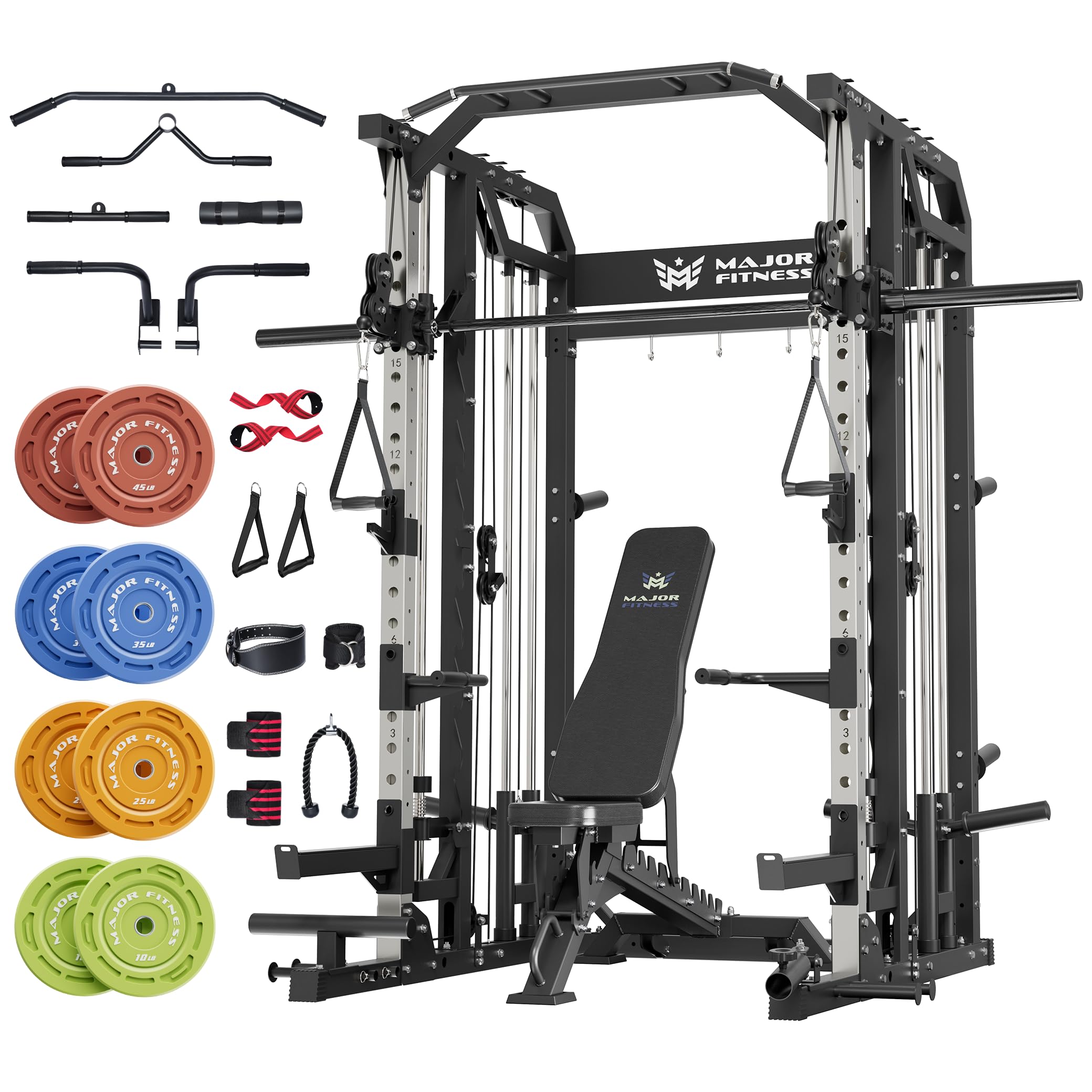 Major Fitness Drone2 Smith△ Machine – All-in-One Home Gym Squat Rack with Weight Bar, Dual LAT Pull-Down Systems & Cable Crossover Machine