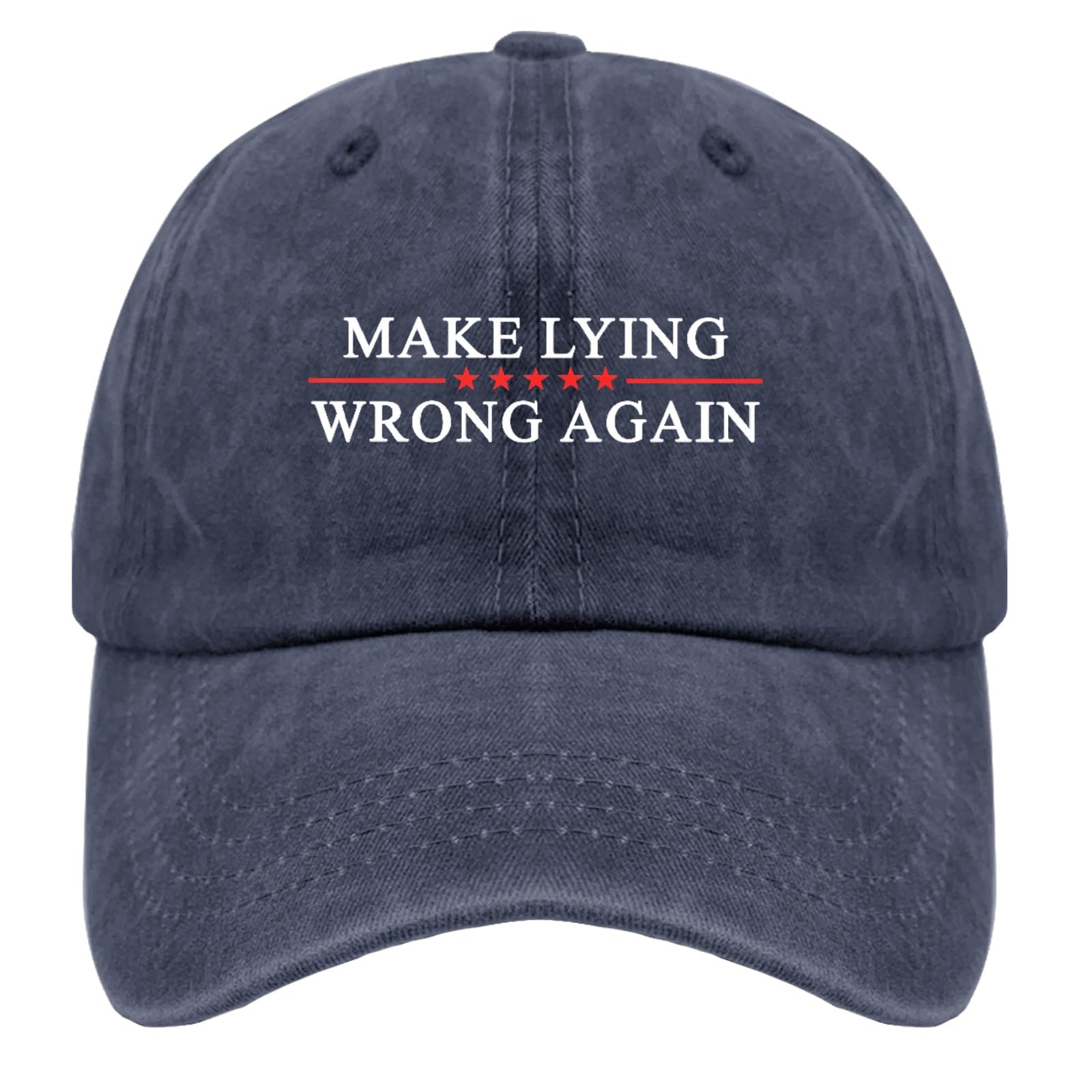 Make Lying Wrong Again BASEBALL CAP: Featuring An Easy-to-wear Comfortably Casual Shape, This Curved Brim Cap Is Perfect. Provide Great Sun Protection And Keep Your Hair Out Of Your Face And Eyes SIZE ADJUSTABLE BALL CAPS :One Size But Fit Most Because Each Make Lying Wrong Again Baseball Cap Is Designed With Metal Buckles On The Backside ,the Size Can Be Adjusted To Fit You In Most Comfortable Way .Never Too Lose Or Too Tight. Make Lying Wrong Again Baseball Caps Features Crisp Make Lying Wrong Again Graphics On The Crown, Which Will Help You Express Your Unwavering Team Pride Easily. Best Gift -. Unstructured, Six Air Ventilated Holes On The Top, Breathable; 6 Embroidered Eyelets On Crown 6 Rows Stitching On Visor, Durable Stitching For Everyday Wear. Gift Idea. Classic Never Out Of Style! Our Birthday Baseball Caps Will Come Everywhere With You And Will Take Your Outfit To The Next Level. Heads-up, All You Hat Fans! With The Design Of The Air Hole On The Top Of The Cap, It Is Ventilated, Air-permeable And Sweating. You Will Not Feel Sultry When You Wear It