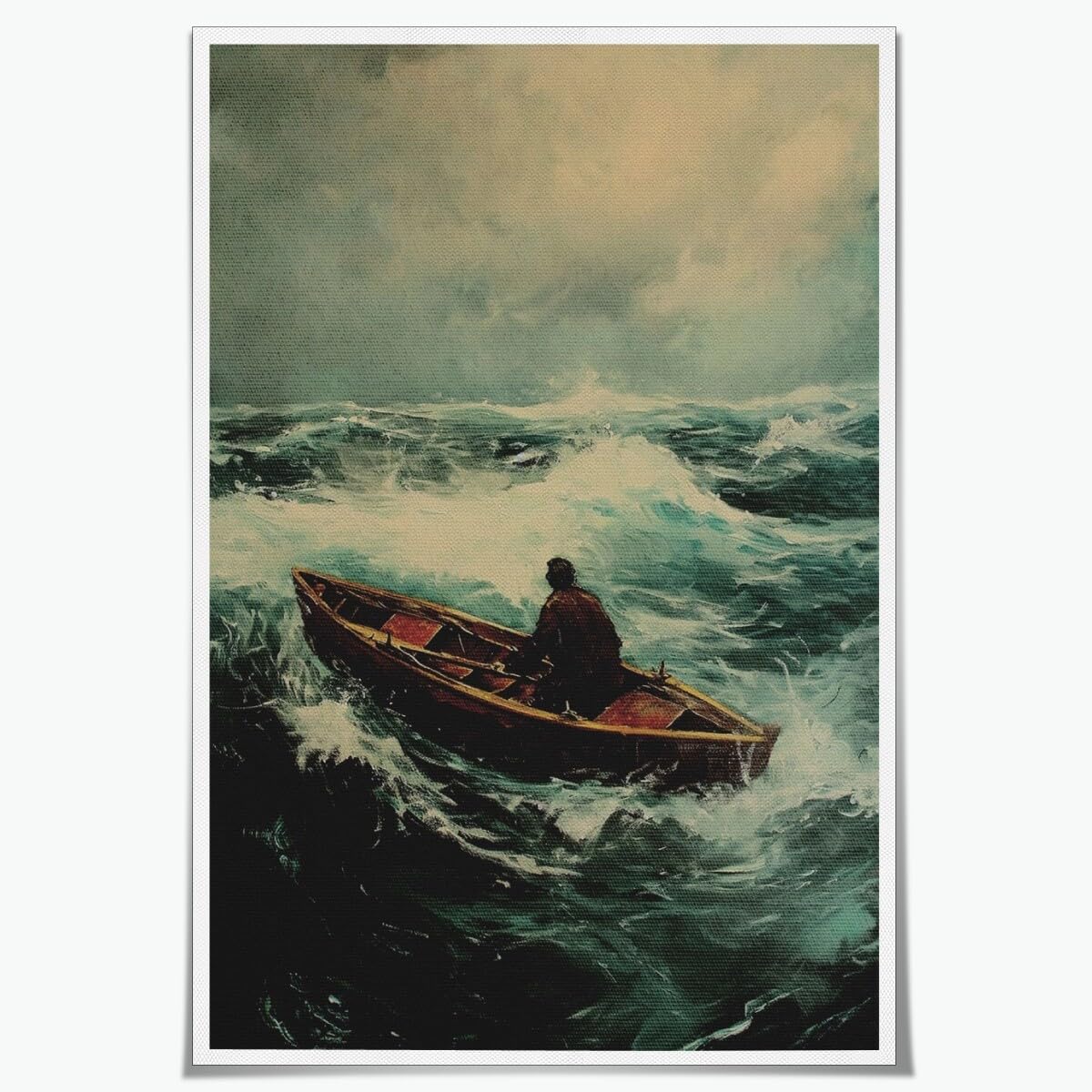 Man Lost at Sea Boat in Stormy Ocean Art Poster Canvas Wall Art Decoration Living Room Home Decor Bedroom Decoration Poster Unframed20x30inch