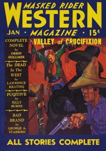 Valley of Cruicifixion by Orrin Hollmer Towering into the night like a massive guardian sentry, Don Attero's Cross kept watch over Deep Water Valley. Only the cries of a mountain lion shattered the silence; not a living thing stirred. Then, with only the moon and two riders as spectators, a mysterious something swung from the beams of the cross. Studying this strange decoration from a blurring distance, The Masked Rider and Blue Hawk rode down to investigate-only to plunge into a seething, sizzling cauldron of iniquity and bloody devilment.