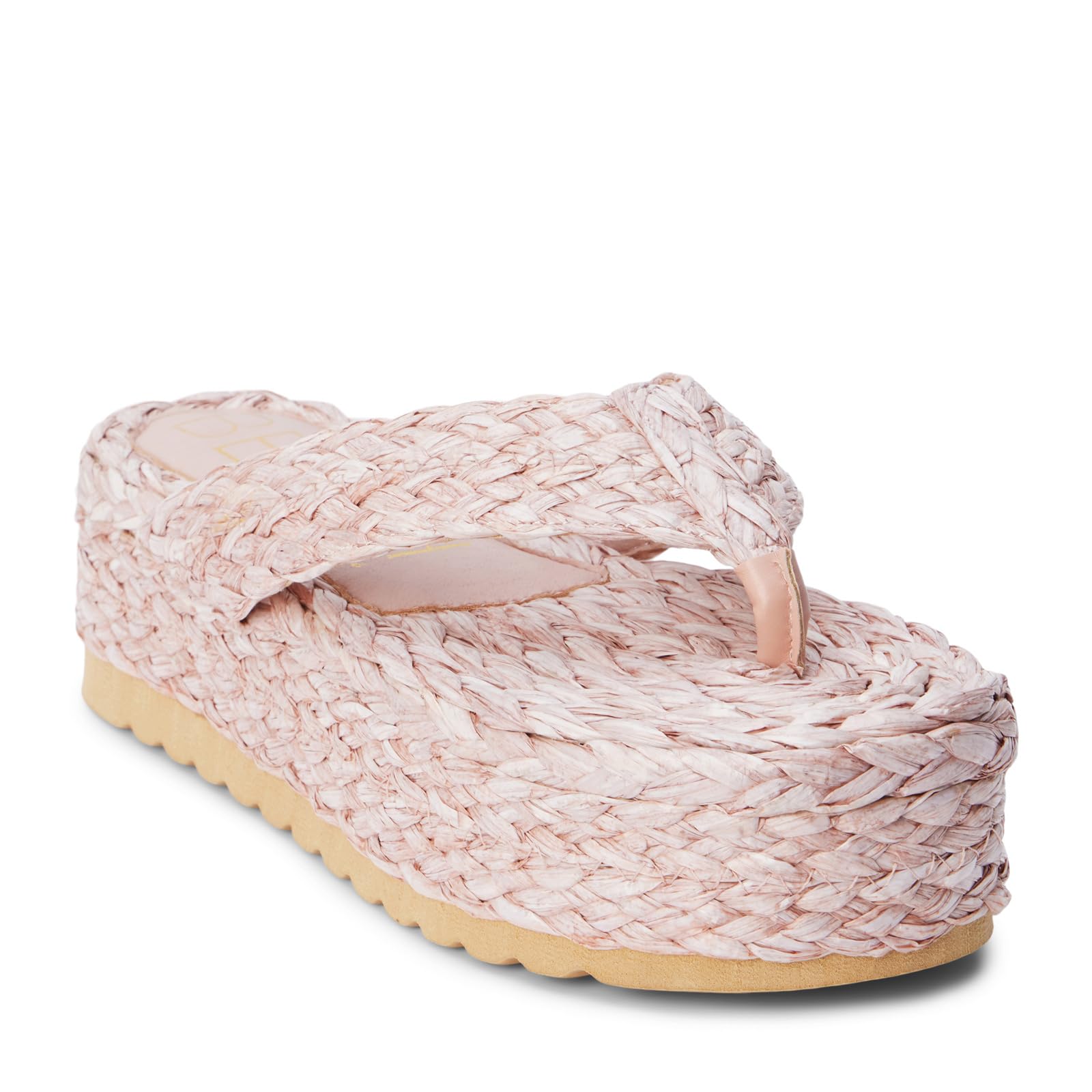 Slip on style Synthetic leather lining Raffia insole Spot Clean Heel Height: 2.5 inches, Platform Height: 2 inches Vegan, All Over Raffia Platform Thong Sandal.