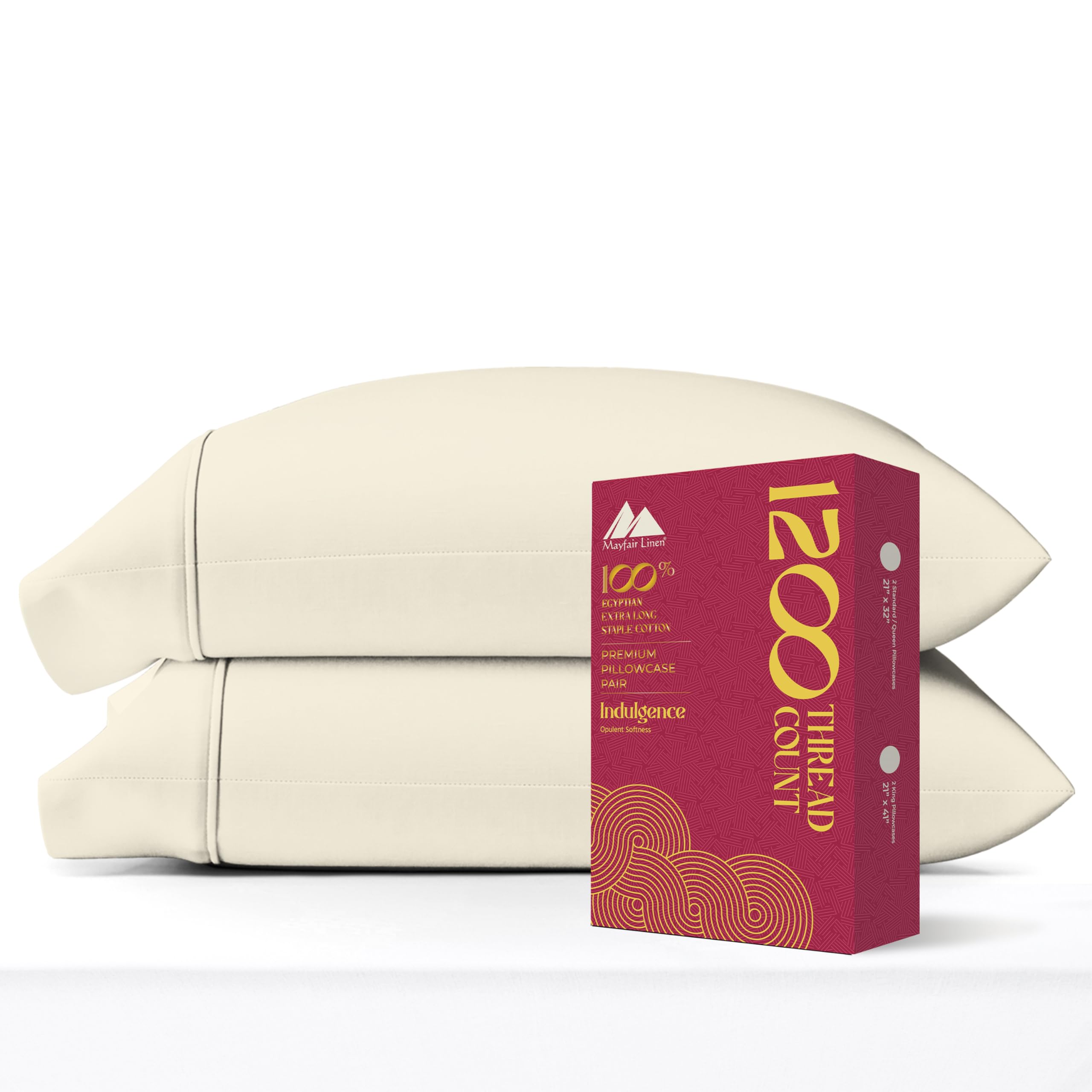 Mayfair Linen 100% Egyptian Cotton Pillow Cases King Size Set of 2 - Luxury 1200 Thread Count Sateen Weave Ivory Pillow Covers, Silky Soft, Breathable