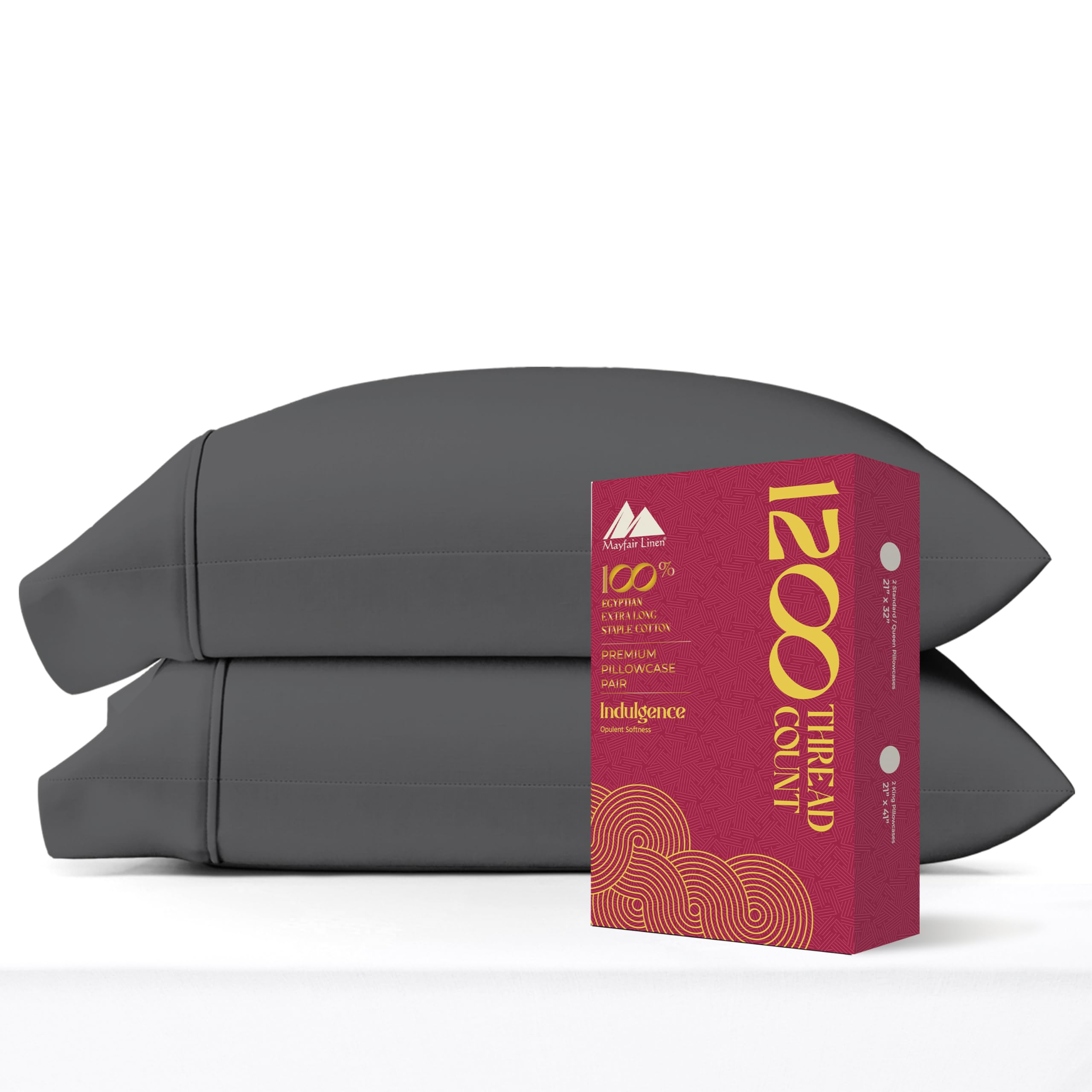 Savor The Luxury Of 100% Egyptian Cotton Pillow Cases: Insomniacs and hot sleepers, there’s a new favorite in the town: Mayfair Linen’s Egyptian Cotton Pillow Cases Queen Size Set of 2. Made from extra long staple cotton (for longer and finer fibers) and sateen weave, our 1200 thread count standard pillow cases set of 2 are exquisitely soft and cashmere silky for a relaxing sleep Opulent Softness & Silkiness For a Divine Sleep: Dive headfirst into our premium cotton pillow cases standard size made to relax and recharge. Quintessentially cooling and breathable, our queen pillow cases set of 2 promises a deep, restful sleep, especially after a hard day’s work. Plus, they’re independently validated for OEKO-TEX to be free from harmful substances, making them best for the kids and adults Heavyweight & Luxe 1200 Thread Count Pillowcases: Known for their majestic thickness and heavy drape, our cooling pillow cases queen size set of 2 resembles the exquisite and opulent bedding of a 7-star hotel. You’ll notice the difference the moment you lie down on our pillow case. Try it and tell us what you think 10x Durable—Pill, Fade, & Shrink Resistant: Our queen size pillow cases set of 2 are mercerized for better luster, softness, and durability. This means our cotton pillowcases retain their color and don’t pill or shrink after washing. However, because of cotton's natural composition, they do wrinkle. You can iron our pillow cover after taking it out of the dryer for a smooth look Available as a Set of Two Pillowcases: Our supreme pillow cases standard size set of 2 are generously sized to fit your pillows with ease. Adorned with a luxe hemstitch and an envelope closure, our pillow covers securely tuck in the pillows for a refined, neat look. Sold as a standard / queen pillow cases set of 2 cotton measuring 21” x 32” in size. Great to gift, too Unapologetically soft and glamorous, Mayfair Linen’s 100% Egyptian Cotton Pillow Cases Queen Size Set of 2 are what dreams are made of. Crafted exquisitely from extra long staple cotton for longer and finer fibers that make stronger and more durable pillow cases. Sateen weave adds a magnificent, royal texture for an ultimate touch of comfort in the bed room. Made from the fabric of the highest purity, our 100% Egyptian cotton pillow cases queen size are wonderfully cool, light, and breathable for a divine sleeping experience throughout the season. Perfect for hot sleepers prone to night sweats. Characteristically thick and heavy, these cotton pillowcases standard size are similar to the ones found in the presidential suites of the 5-star hotel. Our ultimate indulgence Egyptian cotton sheets and pillow cases collection are mercerized for better luster, color, and softness. These high quality standard pillow cases set of 2 cotton don’t pill or fade out in color easily. Machine wash in warm water at home. Gentle cycle wash separately. Tumble dry low. Use non-chlorine bleach only if needed. Our 100% Egyptian cotton pillow cases standard size wrinkle after wash due to their natural composition. To minimize wrinkles, put them in the machine with a few dryer balls or iron afterward. These pillow cases standard size cotton are sized generously to fit even slightly oversized pillows. The 4-inch Z hem and envelope closure ensure the large pillows stay tucked in for a neat, sophisticated look. It’s sold as a pillow case pair, but if you need a complete 1200 thread count sheet set with a flat or top sheet, fitted sheet, and pillow cases, we have that too. Check out our storefront