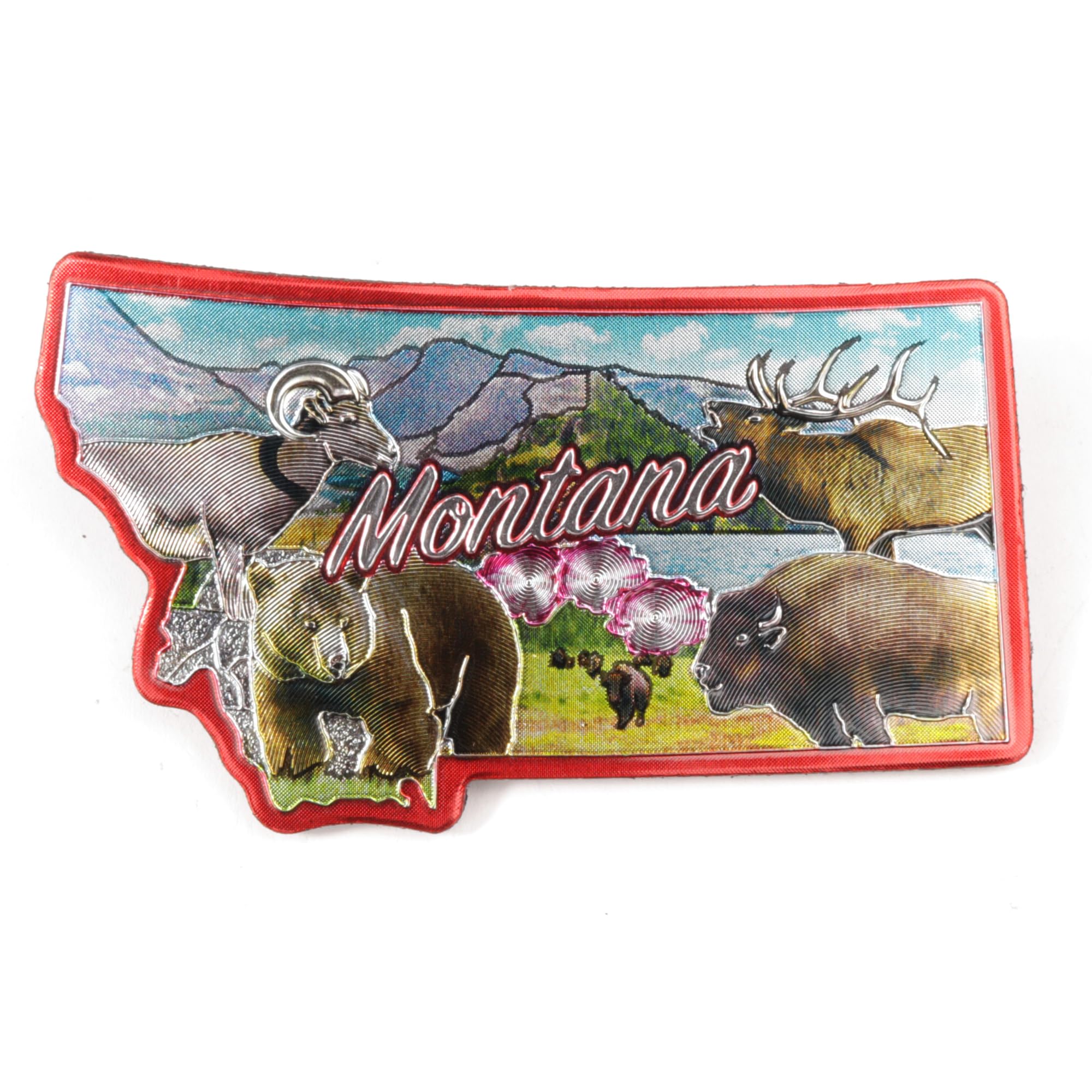 Detailed metallic design featuring Montana's wildlife and landscapes Showcases iconic animals: bear, bison, and elk Made from durable metal with vibrant, long-lasting colors Compact size: 2.5 x 1.25 inches, perfect for any fridge or magnetic surface Ideal souvenir or gift for Montana lovers Capture the rugged beauty of the Treasure State with this Metallic Montana Magnet, measuring 2.5 x 1.25 inches. This beautifully crafted magnet features a detailed metallic design that showcases Montana's iconic wildlife and breathtaking landscapes, including bears, bison, and elk. Made from durable metal, it boasts vibrant, long-lasting colors that make it a perfect addition to any fridge or magnetic surface. Whether as a memento of a memorable trip or a thoughtful gift for a Montana enthusiast, this magnet brings a touch of Montana's natural charm to any space.