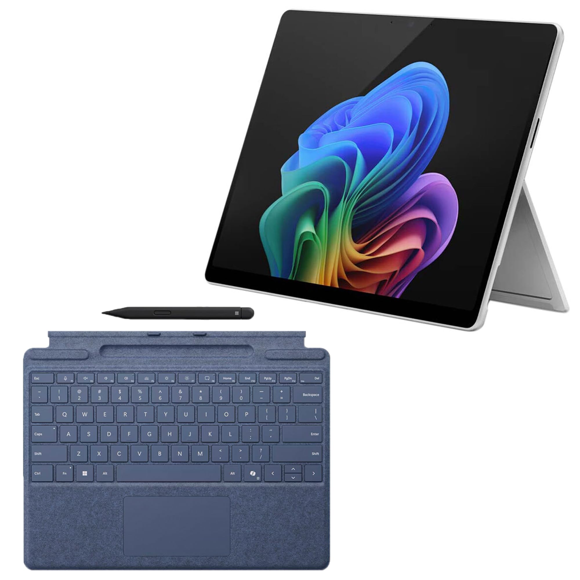 [Copilot+ AI performance for work and creation] — Intel Core Ultra 7 266V with a 48 TOPS AI NPU speeds everyday work, creative tasks, and calls. Copilot in Windows 11 Professional helps draft, summarize, and find content faster. The 2-in-7 design switches from tablet to laptop in seconds. [13" OLED Touchscreen 2.8K, 120 Hz, 600 nits] — 2880 x 1920 OLED delivers deep contrast and crisp text for spreadsheets, decks, and streaming. Up to 120 Hz keeps inking and scrolling smooth. 600 nits helps visibility in bright offices and on the go. [AI-enhanced video calls] — A high-resolution 10 MP camera supports Auto Framing, Eye Contact, Voice Focus, and Portrait Blur. Meetings look clear and sound clean with dual mics and tuned speakers. Capture sharp video for quick share-outs. [Smarter workflows with Windows 11 Professional] — Use Copilot to speed email, briefs, and research, while Live Captions improves accessibility during calls and videos. Creative apps with generative AI can turn simple prompts into drafts and edits. Feature availability may vary by app and region. [Microsoft Surface Pro Keyboard and Slim Pen included] — Type comfortably with a precision trackpad and shortcut keys. Store and recharge the Slim Pen for notes, sketches, and signatures. Magnetic attachment sets up fast for laptop-style work anywhere.