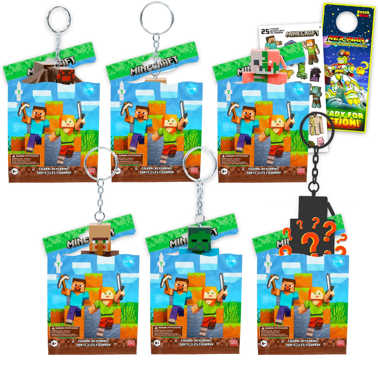 Minecraft Backpack Accessories. This Minecraft figural keychain party favor set includes 6 Minecraft blind bags, each containing 1 mini figurine of your favorite Minecraft characters. Sure to be a hit with Minecraft fans, these Minecraft mini figure keychain mystery bags are great for party favors, party supplies, goodie bag fillers, gift basket fillers, stocking stuffers, and more! With 18 different mini figures to collect, these Minecraft figural keychain blind bags are fun for everyone! Enjoy the mystery of opening the bags to find Steve, Alex, Creepers, Zombies, and other favorites. Officially licensed Minecraft collectible mini figures keychains for kids, boys and girls alike, also comes with Minecraft stickers and bonus Beach Kids Rexman door hanger. WARNING: CHOKING HAZARD—Small parts. Not for children under 8 yrs. Minecraft Figural Keychains Blind Bags- Bundle with 6 Minecraft Mini Figure Keychains for Kids, Adults Plus Stickers