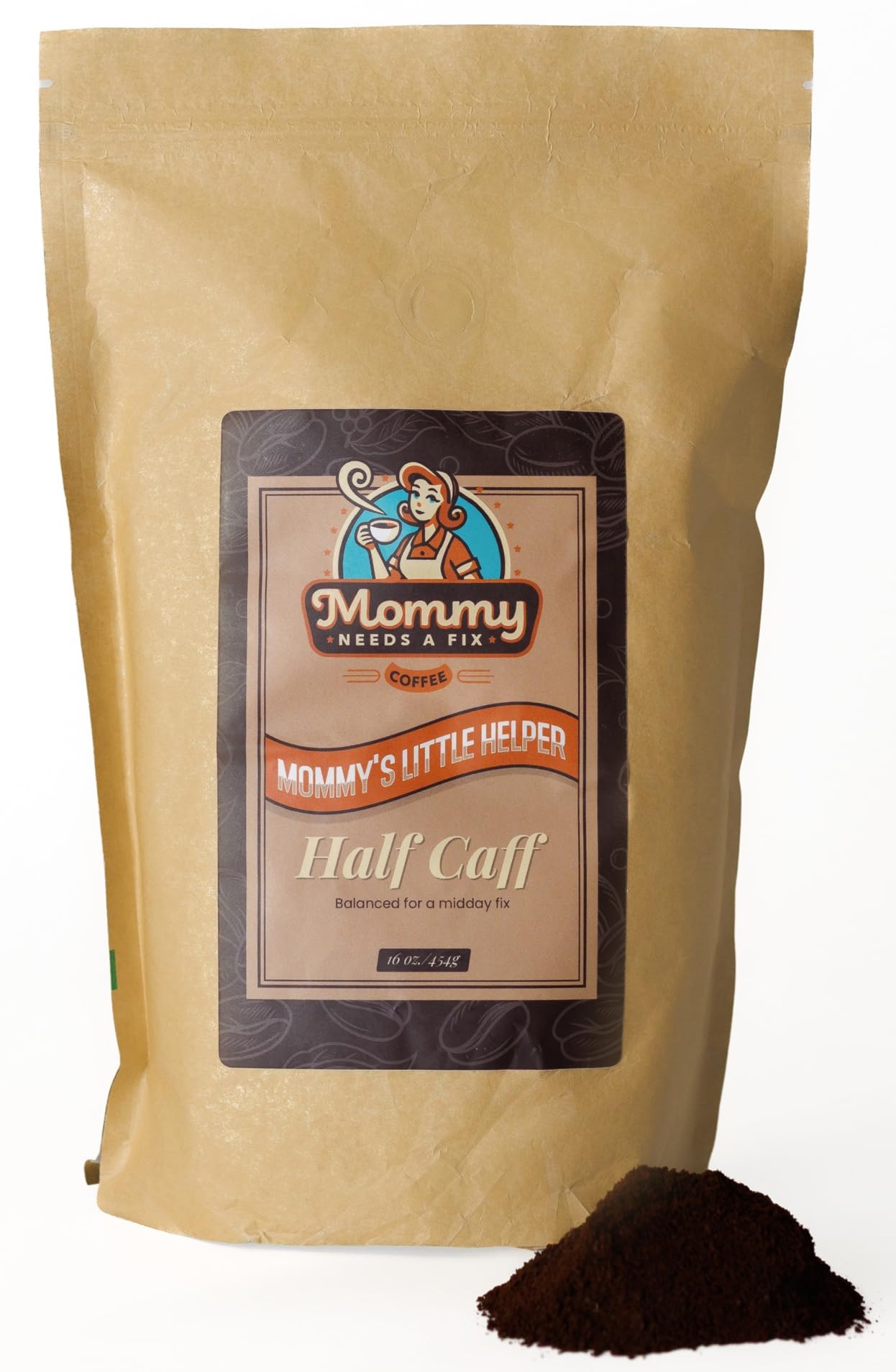 Balanced Caffeine, Naturally Processed: Our Half Caff blend is crafted with a mix of regular and Swiss Water Process decaffeinated beans, 100% chemical free, no additives, no jitters. Perfect for those cutting back, but still craving a smooth energy boost Rich & Bold Flavor: A full-bodied medium roast made from 100% Arabica beans, with notes of toffee and a smooth finish. Balanced acidity, no bitterness, just delicious, mellow coffee with half the caffeine Safe for Pregnancy and Breastfeeding: Ideal for pregnancy, breastfeeding, or anyone seeking a gentler caffeine intake. Designed with parents in mind, but loved by anyone wanting a more mindful coffee option Pre-ground for Everyday Convenience: 1lb (16 oz) bag of medium ground coffee, ready to use with your drip machine, pour over, French press or AeroPress. Freshly sealed for long-lasting flavor Small Batch Roasted, Responsibly Sourced: Roasted in Texas by a husband and wife team who believe coffee should taste good and feel safe. Our Guatemalan, Costa Rican, and African beans are Fair Trade certified and sourced through Direct Trade partnerships Some days call for balance, and that's where Mommy's Little Helper Half Caff steps in. This smooth, satisfying blend delivers 50% less caffeine while keeping 100% of the flavor. Made with premium Arabica beans, it provides a clean brew that gives you just enough energy without sending you through the ceiling or crashing to the floor later.