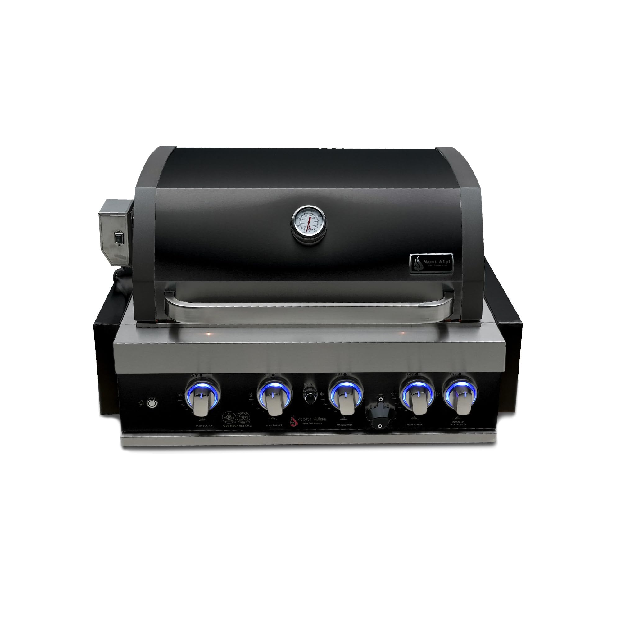 BUILT-IN FEATURES - The MABi400-BSS 32-inch island gas grill arrives fully assembled and features 4 tubular stainless steel high efficiency burners with a rear height-adjustable ceramic infrared burner that produces a whopping 63,000 BTU’s of heat output. The grill also features a stainless steel warming rack, 8mm stainless steel cooking grids and a generous cooking area of 28-inches x 18-inches (792 square Inches of total cooking area). ADDITIONAL FEATURES - A double lined grill hood with temperature gauge is standard for maximum heat retention. The grill has two cooking surface halogen lights, On/off red/blue changing control knob lights, a bottle opener, electronic ignition, and easy access full front pull-out grease tray for easy cleaning. You will also get a 120V 4 Watt heavy duty electric motor rotisserie kit (holds up to 25 lbs) and a waterproof outdoor rated weather cover to protect your grill from the elements. NATURAL GAS CONVERTIBLE - Although this grill comes with a propane hose and regulator as it comes ready for propane use, it can be easily set up for conversion into the more environmental-friendly natural gas, providing another convenient cost-effective, and reliable source of heat for outdoor cooking. (Conversion kit sold separately) STAINLESS STEEL CONSTRUCTION - This outdoor kitchen is made of 304 marine grade stainless steel, a high-quality material that is known for its durability and resistance to corrosion and rust that also adds sleek, modern, and stylish addition to your backyard or patio. High and consistent heat output are made possible by the stainless steel burners, allowing you to cook a variety of food and meals with ease. The stainless steel components also make the grill easy to clean and maintain PLUG AND PLAY REPLACEMENT - This MABi400 built-in grill is a direct plug-and-play replacement for your old grill with the same cutout length and width making it really easy to set up (31.5 inches and 36 inches is suitable for this built in). Mounting brackets and back brackets designed to hide extra hole space leaving no ugly gaps. (this means that if the grill is smaller than the hole, as long as the brackets are within the tolerance of 32 to 33, the grill will look finished and clean). LIMITED LIFETIME WARRANTY - Mont Alpi grills are designed and built to last and we stand behind their performance. As a demonstration of commitment to our customers and their satisfaction, we offer a limited lifetime warranty (limitations apply) on all our products. Please do not hesitate to reach out to us If you have any questions or concerns regarding our products. We are here to help. PRODUCT DIMENSIONS - Height (hood closed) - 21”. Height (hood open) - 35”. Depth -23”, Width - 31 1/2”. Rotisserie kit length - 32” The MABi400 is the perfect built in for any project, whether replacing or starting fresh. the grill is manufactured using 304 stainless steel and designed to withstand the elements. The good looking grill offers 4 burners of regular cooking area along with a rear burner and heavy duty rotisserie kit for the ultimate rotisserie experience. The large L brackets and back bracket provide extra tolerance for most 4 burner cut outs. The grill comes standard with LED knobs that are blue when the grill is off and red when the grill is on, there are also two bright internal lights for precision cooking, even in the dark. Be sure to check out the useful optional accessories such as the charcoal tray and griddle. Grill comes as propane ready but can be converted to Nat gas within minutes, simply buy the additional Mont Alpi Natural gas conversion kit.