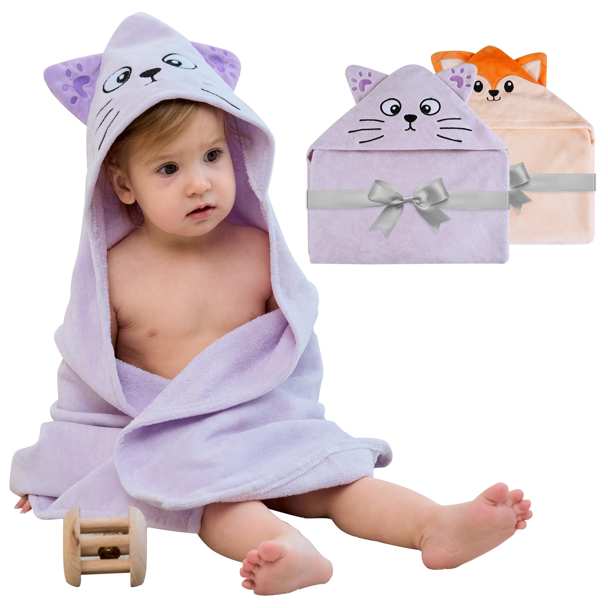 PREMIUM MATERIAL: Our hooded toddler towels are made of 100% pure cotton material, very soft and thick, has extreme water absorption. Will not cause any harm to the toddlers' skin ANIMAL DESIGN: The toddler towels paired with animal hood is so attractive. It will highlight your cute baby. Absolutely able to dry your baby's hair quickly, protect your baby from catching a cold VERSATILE USE: The infant bath towels are perfect for not only bath, but also as a blanket or swaddle. The towels for toddler can be used in different occasions, like beaches, bathrooms, swimming pool TODDLER GIFT: We provide 2 pieces of toddler towels, which can be used as a replacement for easy use. It is a perfect gift for girl toddler and boy toddler SIZE & PACKAGE: The size of toddler bath towels is 32"*32"(81x81cm) bath towel + 8"(20cm) hood, which suits for 0-36 months toddlers. Each package includes 2 toddler hooded bath towels Premium Cotton Baby Towels with Hood: Woven of thick 100% cotton velour and terry for softness, thickness and absorption,which comesnaturally with hypoallergenic properties.Very gentle and safe for baby’s sensitive skin, keeps baby dry and warm quickly after baths.