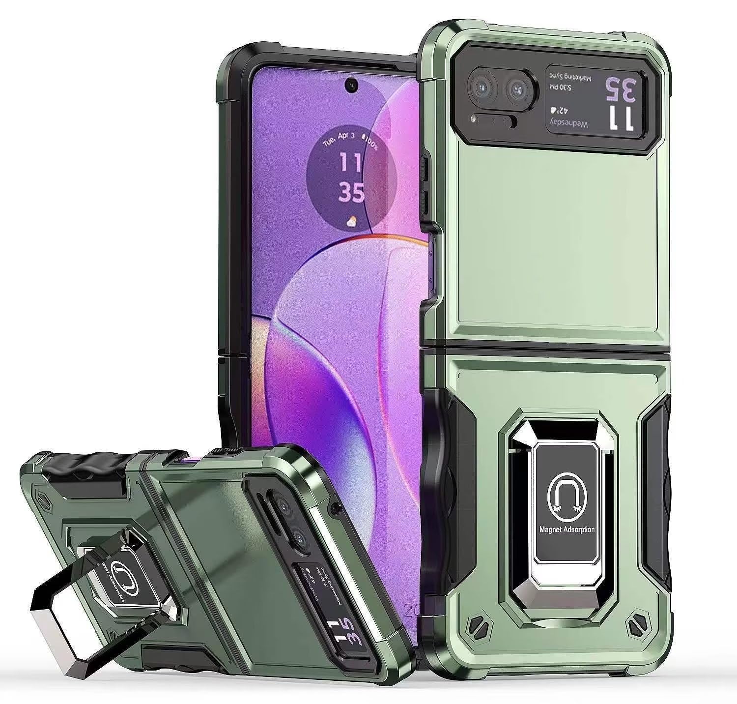 Compatible Model:For Motorola Moto Razr 40,Moto Razr 2023. Armor TPU+PC Case:Military drop tested,Heavy duty case with built-in stand/kickstand and holster clip made of rugged material,Rubber-like feel for a non slip grip control.Built-in Kickstand case has built-in ring stand with a vertical and horizontal angle that can bring you a convenient viewing experience. Screen & Camera Protection:lip camera lens protection,screen protection.It can protect your screen and camera when it on the ground and from drops.Shockproof 4 corner bumper cushions offer your device high-grade corner drop protection. Shockproof Covers Heavy Duty case made of rugged material and have a rubberized texture that defends the device from hard drops and scratches. Masterfully Crafted :Perfect fit for device that also retains easy access to all functionalities,including all buttons,camera,headphone jack,speakers, microphone and charging port.Built-in kickstand allows for hands-free viewing both horizontally and vertically. 100% Brand New with High Quality.Military Grade TPU+PC Case,[Built-in Kickstand] Dual-Layer Design Heavy Duty Protection Phone Case.
