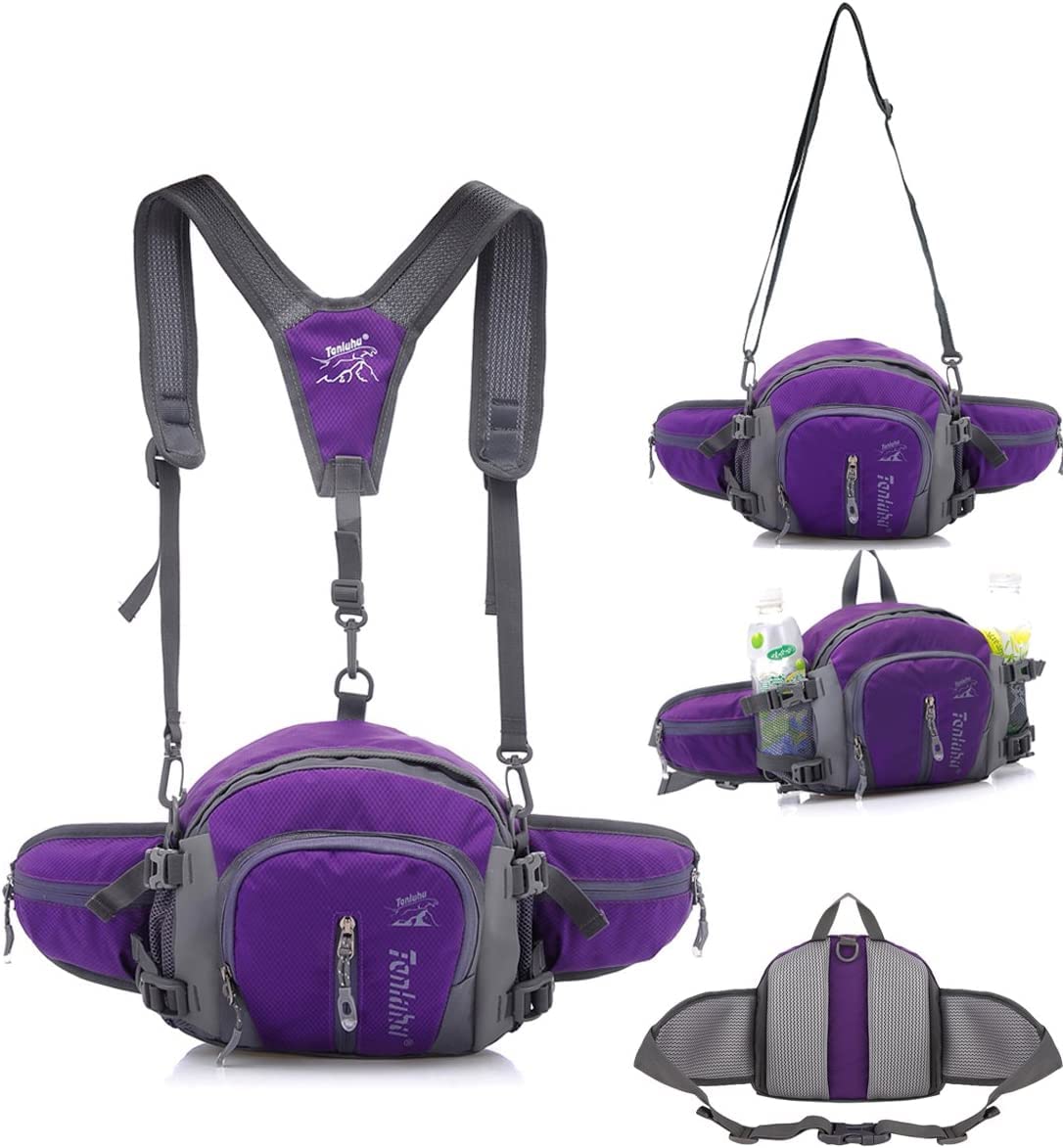 The shoulder harness take all weight off of the abdominal area and allows for significant storage. Great for hiking, biking or just having a secure storage area on your person. Perfect to carry items for a short hike, bicycling or sight. Large capacity of the pocket you can put easely your paspoort, boardingpass, wallet and a small tablet. The materials are good and is easy to clean. 6 pockets for different items, keep them orangized Dimensions:25x12x22cm/9.8"x4.7"x8.7" . The perimeter of the bottler should NOT over 24 cm. Could be carried in many different ways. Question 1:Can we have a bag in the front with the shoulder strap? It is on the back side in the image / video?
