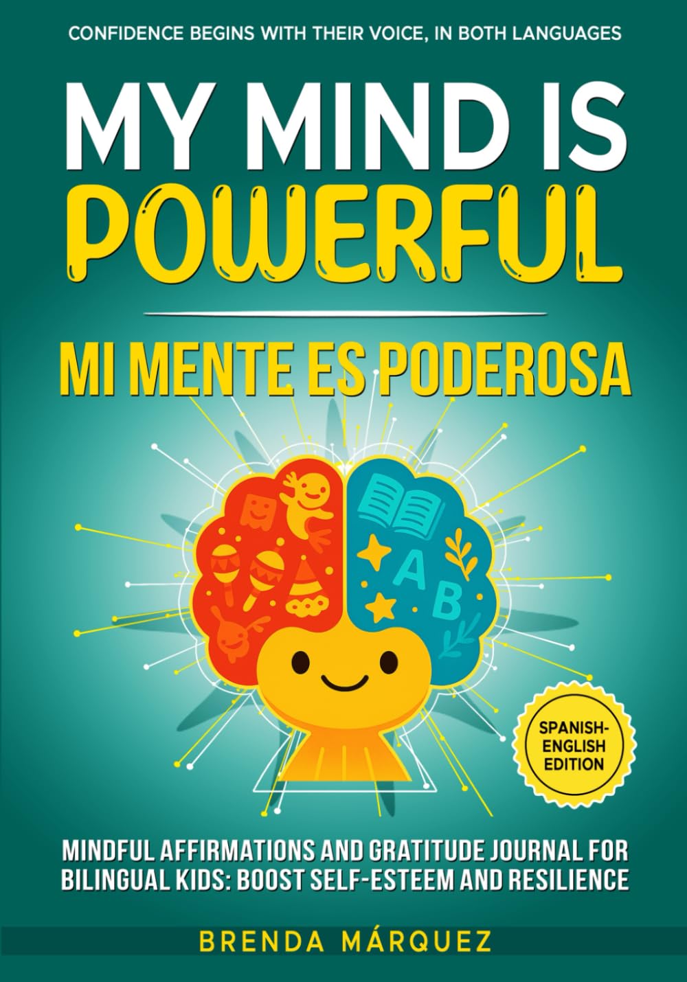 ✨ Help your bilingual child (ages 6–12) grow calm, confident, and proud—with this powerful Spanish-English SEL journal! My Mind Is Powerful / Mi Mente Es Poderosa is the definitive **Spanish-English Social Emotional Learning (SEL) Workbook** that transforms big emotions into resilience, confidence, and **heritage language** pride. Created by a bilingual mom, this daily **activity book** helps kids master **emotional regulation** and mindfulness, all in both languages. 🌈 Inside My Mind Is Powerful your child will learn: ✓ The Secret to Emotional Regulation: Simple breathing exercises and fun activities teach children how to recognize, understand, and calmly manage big feelings. ✓ Build Unbreakable Self-Esteem: Guided daily **positive affirmations** and reflection prompts like *“Hoy doy gracias por alguien que habla español…”* focus the child on their unique strengths and positivity. ✓ Celebrate Cultural Identity: Fully bilingual pages strengthen both English and Spanish fluency while nurturing a deep sense of **bilingual pride** and belonging. ✓ BONUS Reward Tracker & Prize: The built-in point tracker rewards completion, unlocking a printable certificate and a **SURPRISE COMIC STORY about a real Latino astronaut!** ✓ Screen-Free Daily Routine: A quick 3–5 minute ritual (gratitude, emotions check-in, and affirmation) provides a practical **mindfulness for children** tool for home or school. ⭐ Why This M indfulness Book for Kids: This gratitude journal for kids is for ESL teachers, caregivers, and parents who need a **Spanish English activity book** to boost focus, reduce stress, and increase self-expression in bilingual kids ages 6 to 12. 🎁 Give your child the ultimate tool for calm confidence and bilingual pride. Stop the stress, start the journey! Mi Mente Es Poderosa: Un diario bilingüe de gratitud, afirmaciones y atención plena que fortalece la autoestima, la resiliencia y el amor por sus dos idiomas.