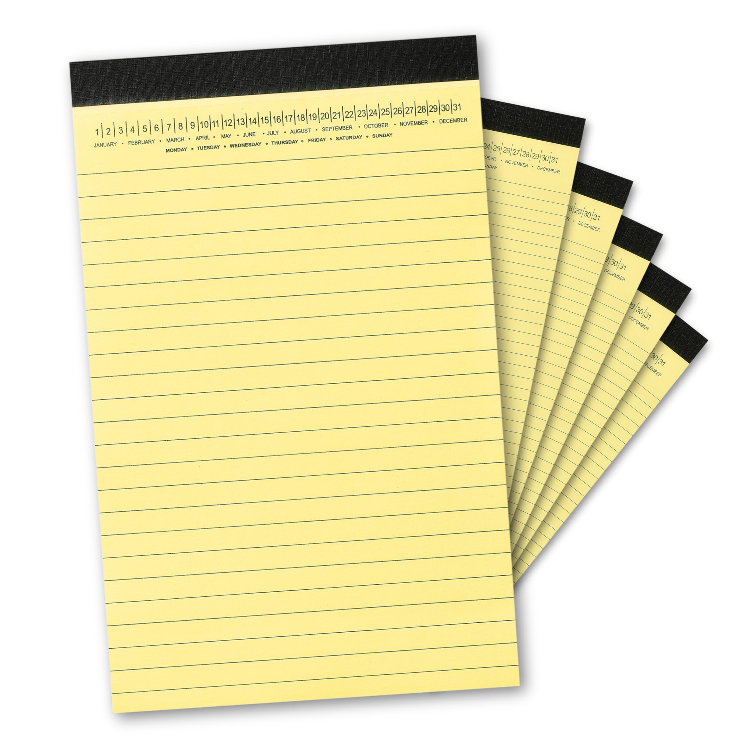 COMPACT & VIBRANT:At 5×8 inches, these notepads slip into bags or pockets—perfect for daily to-dos, quick sketches, or meeting notes. Bright yellow pages boost clarity for students, professionals, and creative minds DATED ON TOP:Preprinted date headers keep deadlines, events, or journal entries in check—ideal for teachers, project managers, and planners needing quick organization at a glance NO-BLEED PRECISION:Thick 70 GSM paper prevents ink smudges and bleed-through. Enjoy clean, professional lines with pens, pencils, or highlighters—great for detail-oriented writing EASY TEAR-OFF:Micro-perforated sheets detach smoothly, leaving clean edges—no rips or mess. Share or file your notes effortlessly, perfect for collaborative work or personal archives VALUE-PACK WITH STURDY SUPPORT:Six 30-sheet pads (180 pages) feature strong backing for steady writing—ideal for brainstorming, studying, note-taking, travel, or daily planning at a great price Elevate your everyday writing with the Mymazn Small Legal Pads – where practicality meets vibrant simplicity.