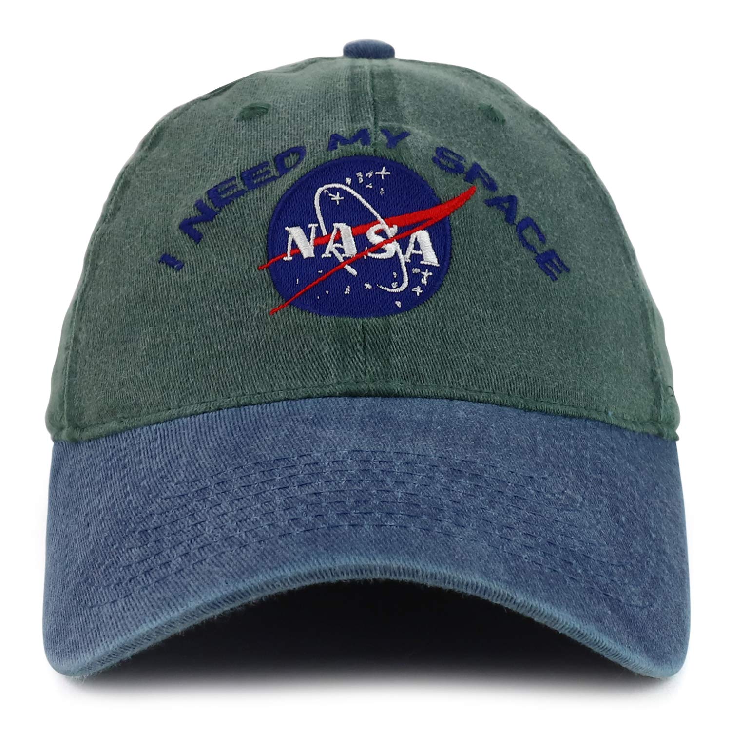 Low Profile, Soft Crown 6-panel cap Flexible Fitted Cap (Stretchable) Matching Fabric Undervisor. Matching Color Sweatband Embroidered in the USA Available in S/M & L/XL Low fitting, pigment dyed washed cotton cap with NASA "I NEED MY SPACE" embroidered on the front. Unstructured (soft crown) Cotton & Spandex twill cap with Flexible or stretchable fitting.