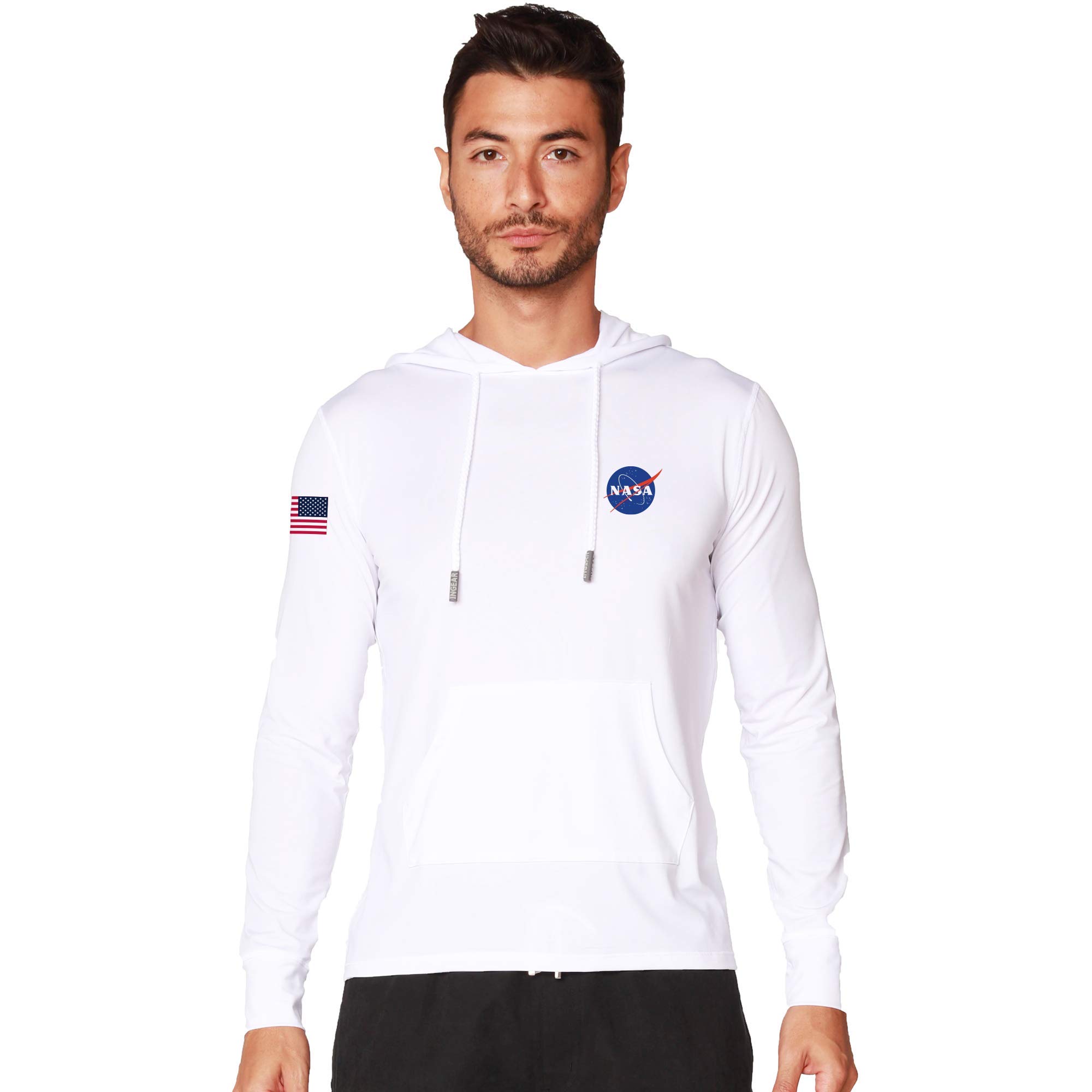 This men's Hoodie NASA Novelty Shirt Long Sleeve light weight active with pockets sun shirt is made of a super soft material features permanent UPF UV/Sun Protection and fast drying. The fabric UV protectant which will help protect your skin from the sun when used outdoor. This NASA Graphic hoodie shirt is loose fit, very comfortable, breathable and soft it is the perfect gift for men. The Melanoma International Foundation recommends this fabric as an effective UV protectant only for covered areas. It can also be used under your winter clothing for ski, snowboard, etc. Unisex cut, perfect for women and men. Great for a day of fishing,running, sailing, swimming, hiking and any other of your favorite outdoors sports In need of UPF/UV Sun protection shirt with hoodie and pockets that you can count on for the life of the garment wet or dry? That fishing shirt, sun block shirt, swimming shirt, UPF shirt or UV shirt that will deliver superior sun protection and performance? Then look no further, we have the ultimate shirt for you. Our Solar Performance UPF long sleeve t-shirt is the perfect addition to any active outdoor lifestyle. It offers superior sun protection, with UPF UV protection built directly into the fibers of the fabric. This shirt is ideal for hot summer days when you need it most. Use this shirt on the boat, or as a stylish cover-up at the beach or pool. Even in cold weather the UPF shirt is an excellent choice for fishing trips, or sunny days on the ski slopes. The Melanoma International Foundation recommends this fabric as an effective UV protectant only for covered areas.