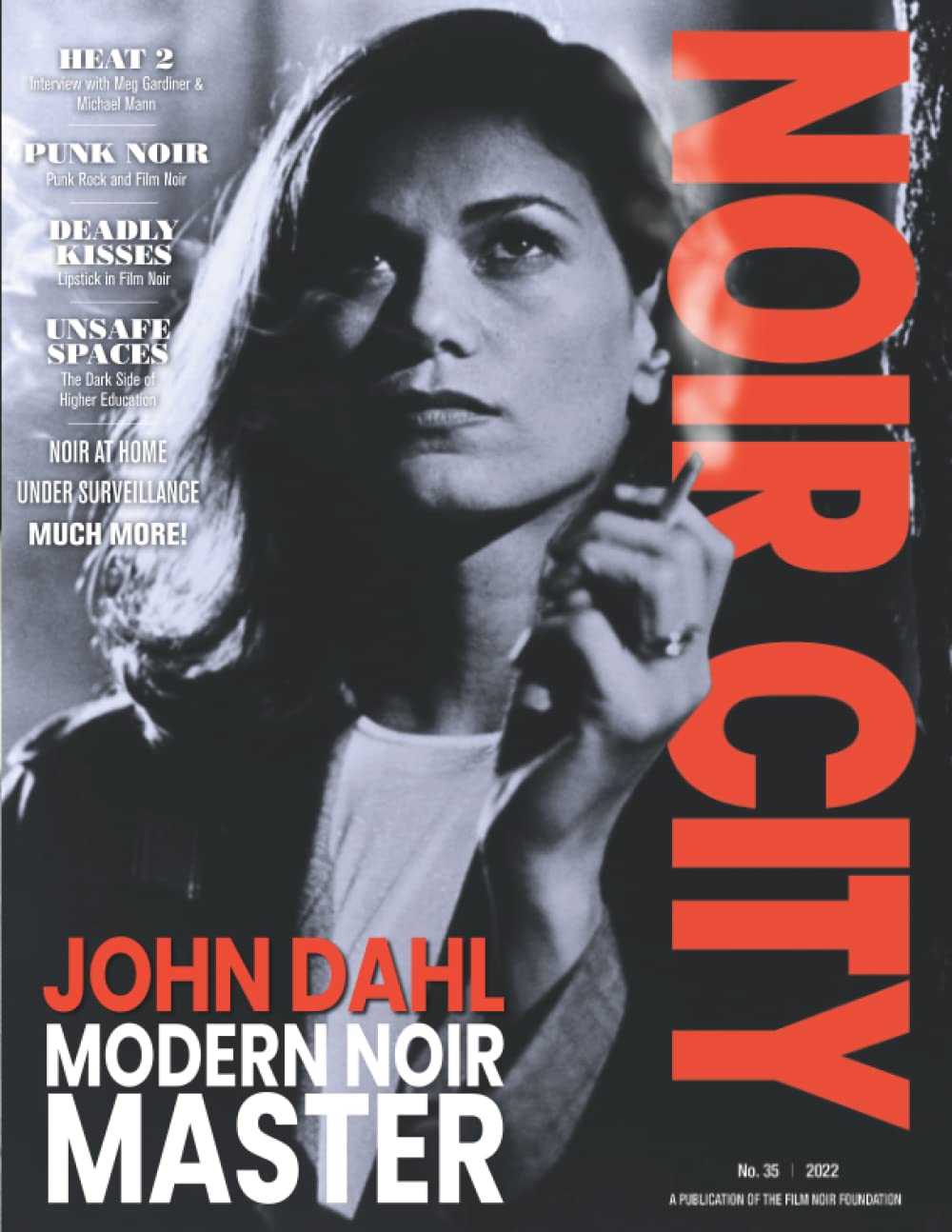 NOIR CITY, the acclaimed magazine of the Film Noir Foundation, now available in print! In issue #35 we announce this year's Modern Noir Master, an award annually bestowed by the FNF upon a contemporary artist whose work has extended the traditions of classic film noir. 2022's recipient is John Dahl, who directed such neo-noirs as Red Rock West (1993), The Last Seduction (1994), and Rounders (1998). NOIR CITY's Sam Moore speaks at length with Dahl about his steady, sturdy, noir-stained career. Also in this issue: Nick Kolakowski interviews director Michael Mann and his HEAT 2 coauthor Meg Gardiner; Nora Fiore considers the vital role of lipstick in film noir; a mini-memoir from Chris D. of The Flesh Eaters on the connection between film noir and punk rock; Jake Hinkson assesses noir's dark visions of academia; John Wranovics surveys the life of classic noir producer Harry Popkin; and Nathalie Atkinson looks at the new graphic novel adaptation of The Set-Up . Plus book reviews, film reviews, and more.