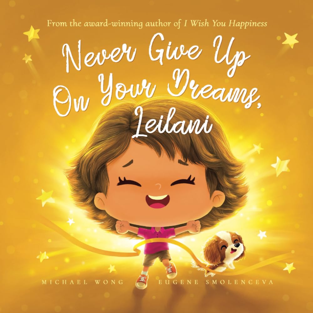 From the award-winning author of I Wish You Happiness and I Will Always Be Proud of You comes an inspiring children's picture book about never giving up on your dreams. " A superbly illustrated picturebook packed full of tips to help children grow up to be anything they want to be. Highly recommended! " (5-Star Review) — A 'Wishing Shelf' Book Review " Never Give Up On Your Dreams is a stunningly illustrated and thoughtfully written book " (5-Star Review) — David Korson, Readers' Favorite Never Give Up On Your Dreams, Leilani , empowers your child or grandchild with the grit, resilience, and perseverance to never give up on their dreams in a beautiful, inspiring picture book. Show them they have the strength and courage within to achieve all their dreams. “Beautiful,” “perfect,” and “gorgeous” are how reviewers and customers describe this empowering book. Inspire your child with the incredible stories of five famous people who overcame incredible odds to achieve their dreams. Your child will have fun with our trademark "Can You Spot the Famous People?" and "Can You Spot the Dogs" activities. The gorgeous, whimsical illustrations embrace diversity and inclusion to help build a better world for our children. This beautifully illustrated picture book is a wonderful gift, whatever the occasion: birthday, graduation, adoption, or just to say, " I love you ." Never Give Up On Your Dreams is a must-have for your home or school social-emotional library. Join thousands of teachers, grandparents, and parents, and discover why so many love and recommend Michael Wong’s "Unconditional Love Series" of empowering children's picture books. There are 250 Never Give Up On Your Dreams children's books personalized with their name. Search for, " Never Give Up On Your Dreams 'name' " on Amazon.com (Canada, UK, Ireland, Australia, etc.): Aaliyah, Aaron, Abigail, Adalynn, Adam, Addison, Adeline, Adrian, Aiden, Alaia, Alexander, Alice, Allison, Amara, Amelia, Andrew, Anna, Anthony, Aria, Ariana, Ariella, Arthur, Arya, Asher, Athena, Aubrey, Audrey, Aurora, Autumn, Ava, Avery, Axel, Ayla, Beau, Bella, Benjamin, Bennett, Brielle, Brooklyn, Brooks, Caden, Caleb, Cameron, Camila, Caroline, Carson, Carter, Charles, Charlie, Charlotte, Chloe, Christopher, Claire, Clara, Colton, Connor, Cooper, Cora, Daisy, Daniel, David, Declan, Delilah, Dominic, Dylan, Easton, Eden, Eleanor, Elena, Eli, Eliana, Elias, Elijah, Eliza, Elizabeth, Ella, Elliana, Ellie, Eloise, Emery, Emilia, Emily, Emma, Emmett, Enzo, Ethan, Eva, Evelyn, Everett, Everleigh, Everly, Evie, Ezra, Faith, Florence, Freddie, Freya, Gabriel, Gabriella, George, Gianna, Grace, Grayson, Greyson, Hadley, Hailey, Harper, Harry, Hazel, Henry, Hudson, Hunter, Ian, Iris, Isaac, Isabella, Isabelle, Isaiah, Isla, Ivy, Jack, Jackson, Jacob, Jade, James, Jameson, Jaxon, Jaxson, Jayden, Jeremiah, John, Jonah, Jonathan, Jordan, Joseph, Josephine, Joshua, Josiah, Josie, Julia, Julian, Kai, Kayden, Kennedy, Khloe, Kinsley, Landon, Layla, Leah, Leilani, Leo, Leonardo, Levi, Liam, Liliana, Lillian, Lily, Lincoln, Logan, Luca, Lucas, Lucy, Luka, Luke, Luna, Lydia, Lyla, Mackenzie, Madeline, Madelyn, Madison, Maria, Mason, Mateo, Matteo, Matthew, Maverick, Maya, Melody, Mia, Micah, Michael, Mila, Miles, Milo, Myles, Naomi, Natalia, Natalie, Nathan, Nevaeh, Noah, Nolan, Nora, Nova, Oakley, Oliver, Olivia, Oscar, Owen, Paisley, Parker, Penelope, Peyton, Piper, Poppy, Quinn, Reese, Remi, Riley, River, Roman, Rose, Rosie, Rowan, Ruby, Ryan, Ryder, Rylee, Sadie, Samuel, Santiago, Sarah, Savannah, Scarlett, Sebastian, Serenity, Sienna, Silas, Skylar, Sofia, Sophia, Sophie, Stella, Theo, Theodore, Thomas, Valentina, Victoria, Violet, Vivian, Waylon, Wesley, Weston, William, Willow, Wyatt, Xavier, Zion, Zoe.