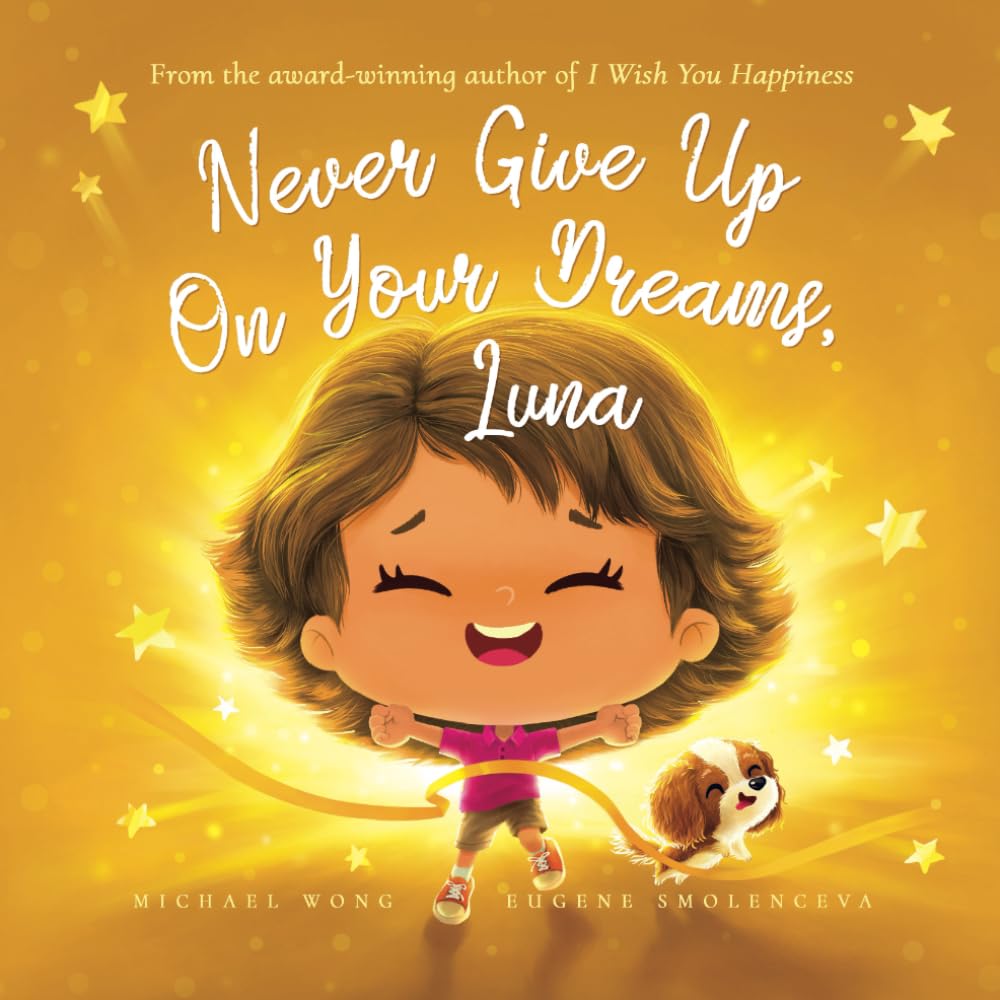 From the award-winning author of I Wish You Happiness and I Will Always Be Proud of You comes an inspiring children's picture book about never giving up on your dreams. " A superbly illustrated picturebook packed full of tips to help children grow up to be anything they want to be. Highly recommended! " (5-Star Review) — A 'Wishing Shelf' Book Review " Never Give Up On Your Dreams is a stunningly illustrated and thoughtfully written book " (5-Star Review) — David Korson, Readers' Favorite Never Give Up On Your Dreams, Luna , empowers your child or grandchild with the grit, resilience, and perseverance to never give up on their dreams in a beautiful, inspiring picture book. Show them they have the strength and courage within to achieve all their dreams. “Beautiful,” “perfect,” and “gorgeous” are how reviewers and customers describe this empowering book. Inspire your child with the incredible stories of five famous people who overcame incredible odds to achieve their dreams. Your child will have fun with our trademark "Can You Spot the Famous People?" and "Can You Spot the Dogs" activities. The gorgeous, whimsical illustrations embrace diversity and inclusion to help build a better world for our children. This beautifully illustrated picture book is a wonderful gift, whatever the occasion: birthday, graduation, adoption, or just to say, " I love you ." Never Give Up On Your Dreams is a must-have for your home or school social-emotional library. Join thousands of teachers, grandparents, and parents, and discover why so many love and recommend Michael Wong’s "Unconditional Love Series" of empowering children's picture books. There are 250 Never Give Up On Your Dreams children's books personalized with their name. Search for, " Never Give Up On Your Dreams 'name' " on Amazon.com (Canada, UK, Ireland, Australia, etc.): Aaliyah, Aaron, Abigail, Adalynn, Adam, Addison, Adeline, Adrian, Aiden, Alaia, Alexander, Alice, Allison, Amara, Amelia, Andrew, Anna, Anthony, Aria, Ariana, Ariella, Arthur, Arya, Asher, Athena, Aubrey, Audrey, Aurora, Autumn, Ava, Avery, Axel, Ayla, Beau, Bella, Benjamin, Bennett, Brielle, Brooklyn, Brooks, Caden, Caleb, Cameron, Camila, Caroline, Carson, Carter, Charles, Charlie, Charlotte, Chloe, Christopher, Claire, Clara, Colton, Connor, Cooper, Cora, Daisy, Daniel, David, Declan, Delilah, Dominic, Dylan, Easton, Eden, Eleanor, Elena, Eli, Eliana, Elias, Elijah, Eliza, Elizabeth, Ella, Elliana, Ellie, Eloise, Emery, Emilia, Emily, Emma, Emmett, Enzo, Ethan, Eva, Evelyn, Everett, Everleigh, Everly, Evie, Ezra, Faith, Florence, Freddie, Freya, Gabriel, Gabriella, George, Gianna, Grace, Grayson, Greyson, Hadley, Hailey, Harper, Harry, Hazel, Henry, Hudson, Hunter, Ian, Iris, Isaac, Isabella, Isabelle, Isaiah, Isla, Ivy, Jack, Jackson, Jacob, Jade, James, Jameson, Jaxon, Jaxson, Jayden, Jeremiah, John, Jonah, Jonathan, Jordan, Joseph, Josephine, Joshua, Josiah, Josie, Julia, Julian, Kai, Kayden, Kennedy, Khloe, Kinsley, Landon, Layla, Leah, Leilani, Leo, Leonardo, Levi, Liam, Liliana, Lillian, Lily, Lincoln, Logan, Luca, Lucas, Lucy, Luka, Luke, Luna, Lydia, Lyla, Mackenzie, Madeline, Madelyn, Madison, Maria, Mason, Mateo, Matteo, Matthew, Maverick, Maya, Melody, Mia, Micah, Michael, Mila, Miles, Milo, Myles, Naomi, Natalia, Natalie, Nathan, Nevaeh, Noah, Nolan, Nora, Nova, Oakley, Oliver, Olivia, Oscar, Owen, Paisley, Parker, Penelope, Peyton, Piper, Poppy, Quinn, Reese, Remi, Riley, River, Roman, Rose, Rosie, Rowan, Ruby, Ryan, Ryder, Rylee, Sadie, Samuel, Santiago, Sarah, Savannah, Scarlett, Sebastian, Serenity, Sienna, Silas, Skylar, Sofia, Sophia, Sophie, Stella, Theo, Theodore, Thomas, Valentina, Victoria, Violet, Vivian, Waylon, Wesley, Weston, William, Willow, Wyatt, Xavier, Zion, Zoe.
