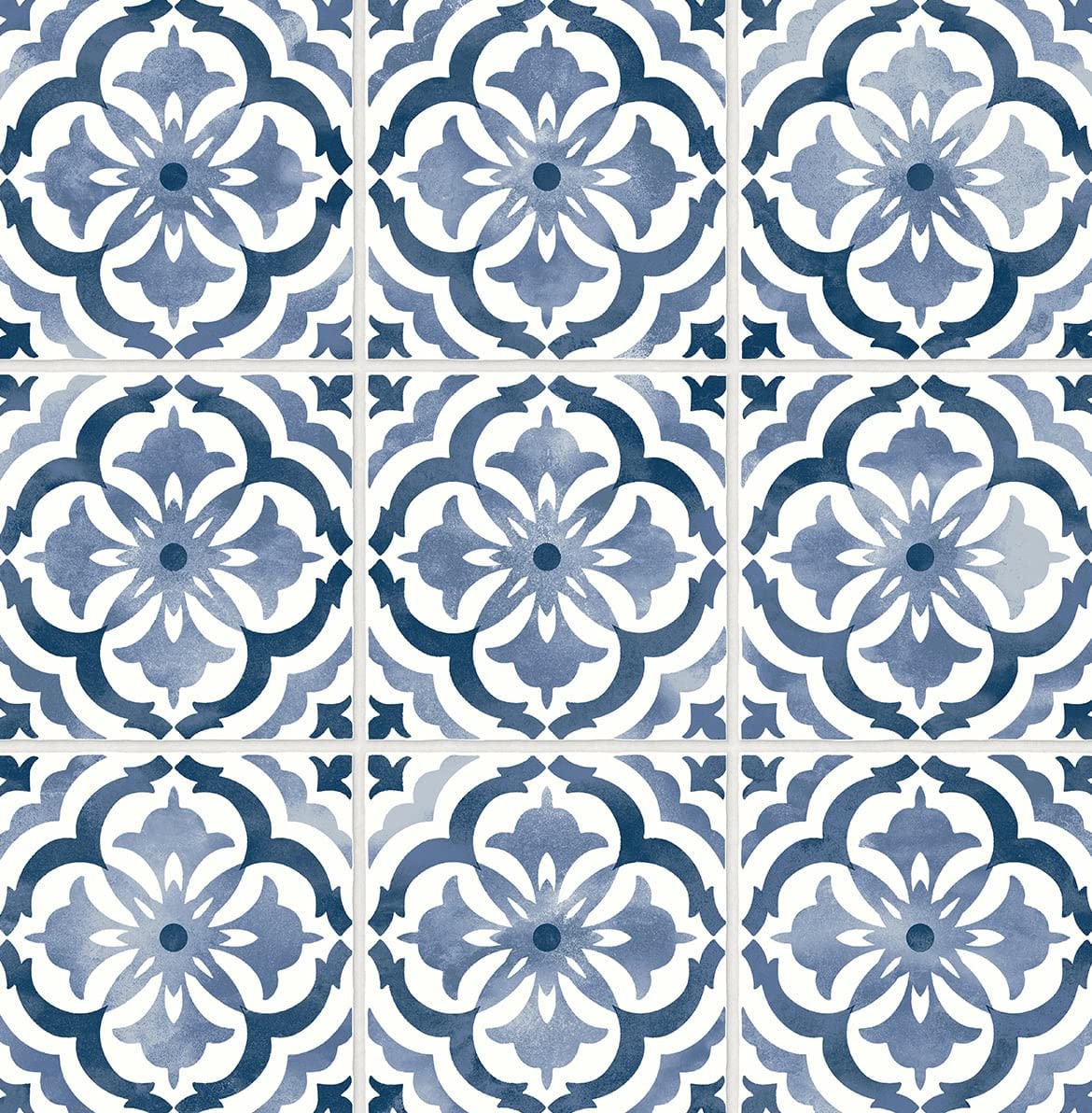 6.95 in. design repeat, straight pattern match Order enough product in one purchase to complete your project to ensure you receive the same dye lot. Proudly made in the USA. DIY-friendly, sticks to any smooth, flat, non-textured surface. 100% Removable Inspired by the beauty of gracefully aged, European-style courtyards, this faux Sorento Tile peel and stick wallpaper from Daisy Bennett Designs has elegant tonal variations throughout. Perfectly suited for a bathroom or kitchen setting, skip the mess of the tile saw and mortar with a DIY-friendly alternative! Referred to as the "Queen of Pattern" in the wallcovering industry, Daisy Bennett developed this premier removable wallpaper collection for NextWall by blending inspiration from quaint global marketplaces with a passion for color and design. With the same qualities and durability as permanent wallpaper, each product offers an easy, fresh alternative to decorating with very little commitment!