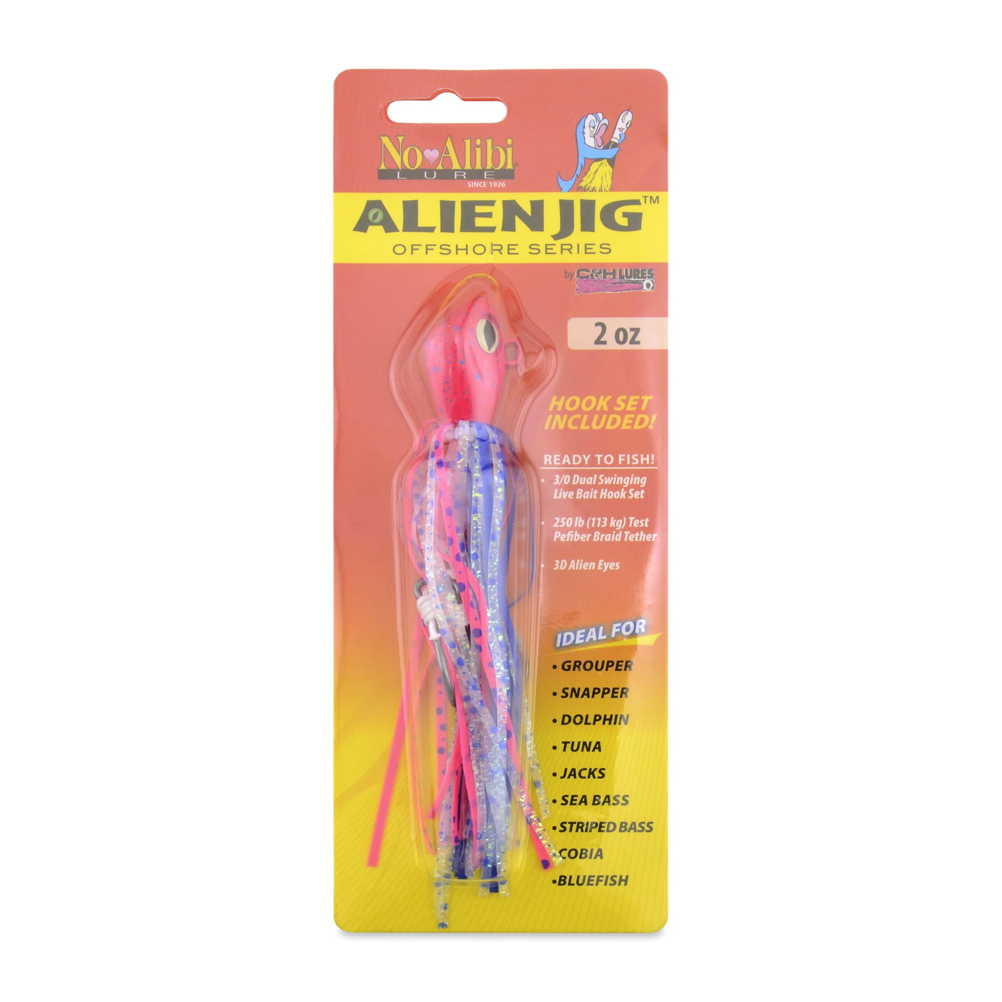 No Alibi Alien Jig Offshore Series – Pre-Rigged Swinging Hook Jig for Saltwater Bottom Fishing – Fast-Sinking, Upright-Landing Design – 2 oz, 4 oz, 6