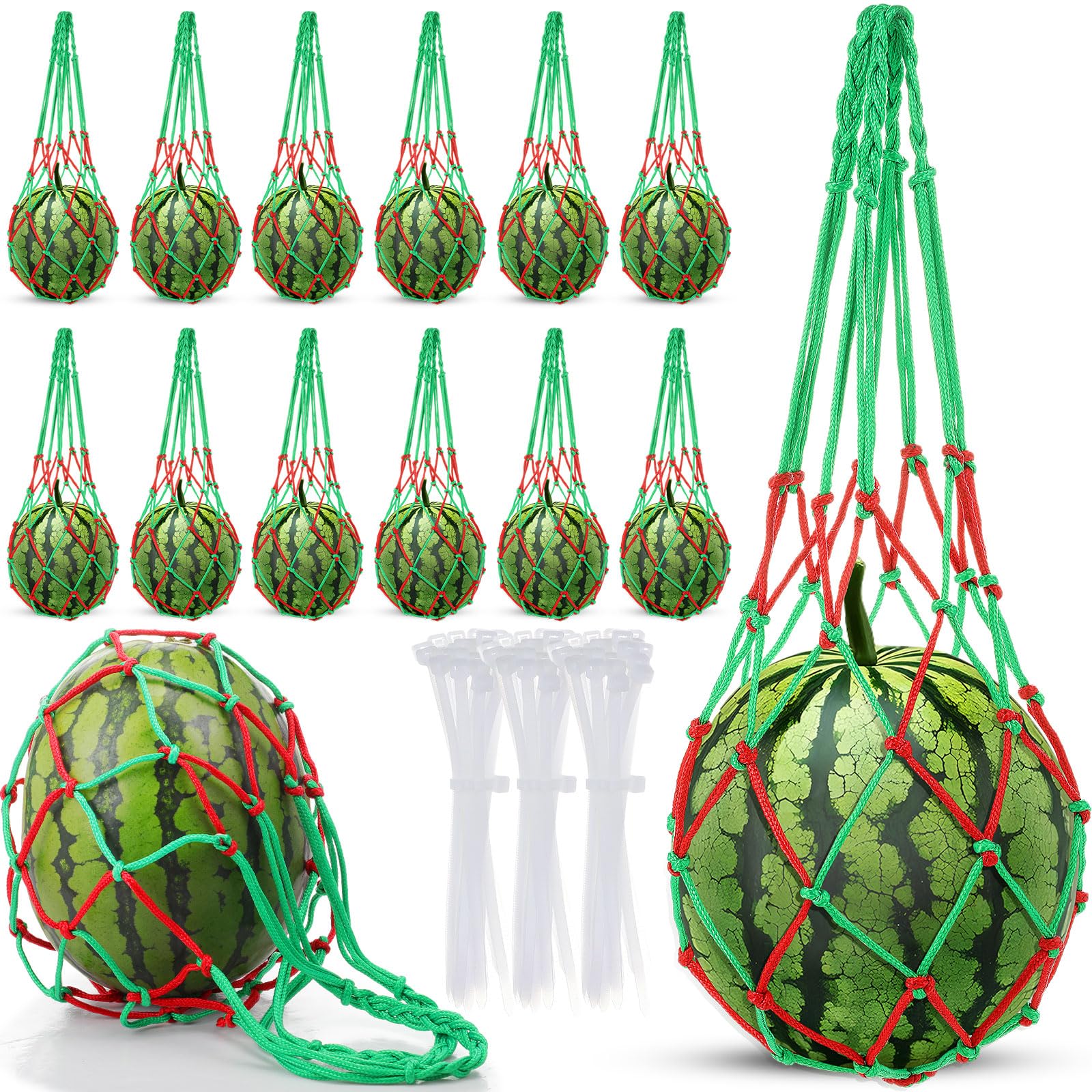 Sufficient Quantity: the package contains 12 pieces of melon nets, packed with 25 pieces of zip ties, which can satisfy your needs for daily use, replacement and sharing, suitable for garden owners Bags for Planting: you can use this trellis net to prevent the ripe fruit from dropping into the dirt, and the net can offer you enough support for you to hang fruits and vegetables for storage Suitable for Melons: each garden trellis netting measures about 9.8 inches/ 25 cm long, and the rope diameter is about 0.2 inches/ 4 mm, which can be applied to different types of melons, such as watermelons, pumpkins, cantaloupe and more, and the consistent netting can provide you with sufficient ventilation; Please pay attention to the mesh size before purchasing Wide Range of Use: you can apply this watermelon holder to store your melons in the vertical gardens, and it is also suitable to hold balls, drinks, poultry, sundries and more, and you can use it as a food dispenser to keep the poultry busy Reliable to Use: this melon hammock is mainly made of thickened nylon material, which is reliable to use, and they can offer you long term use outdoors, solid and firm, suitable for heavy fruits and vegetables Features: Easy to apply: This melon cradle is designed for convenience. You simply need to place the melon in the mesh bag and hang it on your fences, benches and other places. Convenient zip ties: The package contains 25 pieces of white zip ties, which are sufficient for you to tighten the net bag, making it easier for you to carry the fruits and vegetables inside. Specifications: Material: nylon Color: Nets of melons: red, green Zip ties: white Size: Length: about 9.8 inches/ 25 cm Rope diameter: about 0.2 inches/ 4 mm Zip ties: about 5.9 x 0.2 inches/ 150 x 4.5 mm Package includes: 12 x Melons Nets 25 x White zip ties Notes: Manual measurement, please allow slight errors on size. The color may exist a slight difference due to different screen displays. Please pay attention to the mesh size before purchasing.
