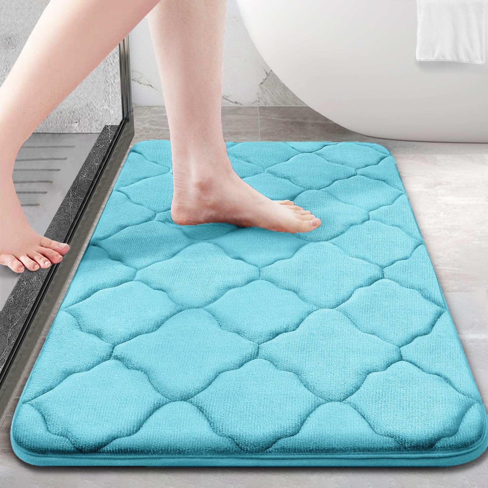 [STYLISH AND CLOUD-LIKE COMFORT] OLANLY's Memory Foam Bath Mat boasts an elegant Moroccan design, infusing a touch of modern luxury into your space. Crafted from ultra-soft microfiber coral velvet outer material and thick cushion memory foam, our bathroom rug provides a cloud-like comfort that contours to the shape of your body, making every step a luxurious experience. [SWIFT DRYING BLISS] Pamper yourself with the rapid-drying comfort of OLANLY's soft velvet microfiber bath rugs, providing a delightful solution for moisture absorption after your bath or shower. Immerse yourself in the convenience of a fast-drying memory foam bathroom mat. [STURDY PVC SUPPORT] OLANLY's bathroom mat features a robust and enduring PVC backing, designed to prevent any shifting or skidding. This superior construction sets it apart from mats with rubber backing that may degrade over time. Ensure the area beneath the rug stays dry for optimal performance, and never place it on wet surfaces. [EASY-CARE VIBRANCE] Elevate your bath experience with our easy-to-maintain rugs. These machine-washable bath rugs keep their vibrant colors intact, adding a touch of brilliance to your living spaces. Incredibly easy to clean and maintain, they stay fresh even after multiple washes. The fade-resistant feature ensures the longevity of their vibrant colors. [VERSATILE LUXURY] Transform your bathroom with OLANLY's memory foam bath mat – a stylish and plush addition to your daily routine. Whether positioned by the tub, shower, or sink, savor the soft opulence underfoot and elevate your bathing experience with timeless elegance. OLANLY Memory Foam Bath Mat Rug 30x20, Ultra Soft and Absorbent Bathroom Rugs, Non-Slip, Comfortable, Machine Washable Bath Carpet for Bathroom Floor, Tub, Shower and Home Decor Accessories, Sky Blue