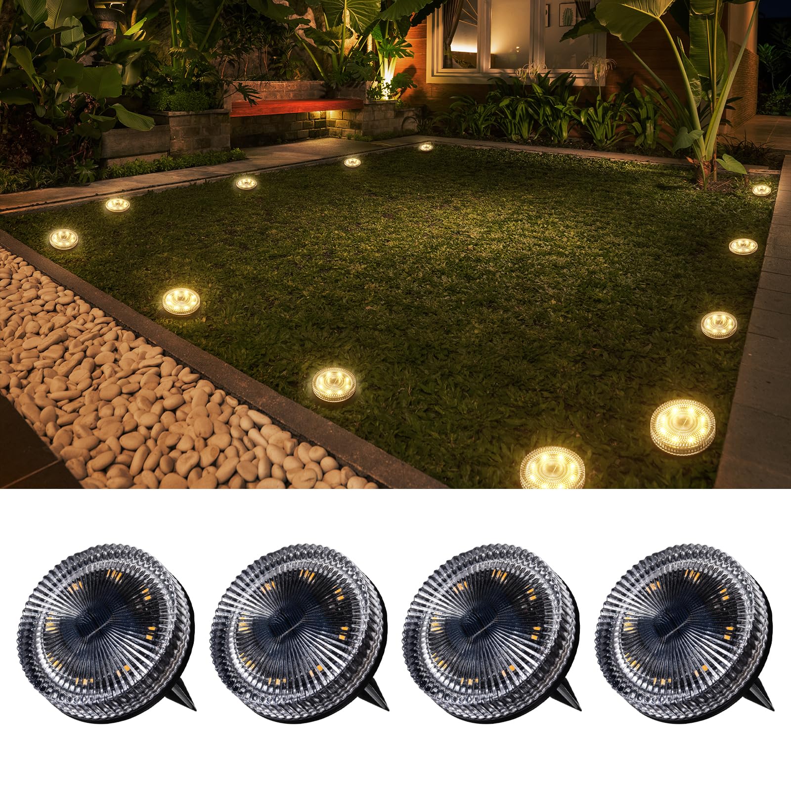 Refined Glass Design with Crystal Style - Experience the sophistication of our solar ground lights with thick glass shade featuring diamond-like radial patterns in crystal style. Unlike ordinary plastic disk lights that only shine at night, these decorative in-ground lights display attractive glass patterns and provide daytime decorative value, then emit a warm, star-patterned glow after dark. The unique light projection adds dimension to your flower beds, walkways, or driveways, offering both day and night enhancement for your landscape. Modular Design & Multi-Purpose - The modular design allows separate replacement of components, saving you from purchasing entire new lights when only one part needs maintenance. These versatile waterproof solar in-ground lights adapt to multiple outdoor settings - illuminate pathways and driveways when installed with ground stakes, brighten tabletops as portable lighting, or enhance walls and fences with mounting bases (sold separately). This flexibility makes them perfect for garden beds, flower borders, landscape edges, or walkways, adapting to your changing outdoor lighting needs. Automatic Efficient Lighting - Our solar garden lights are equipped with 8 spherical LED bulbs providing 25 lumens of warm light with even distribution. These LEDs feature a wide 120° beam angle that eliminates dark spots for more uniform illumination of your pathways and driveways. These solar powered disk lights automatically charge during daylight and illuminate from dusk to dawn, lasting over 10 hours on a full charge. The built-in light sensor ensures they turn on automatically when darkness falls and turn off when morning comes, requiring zero maintenance or manual operation. All-Weather Performance - These outdoor solar lights are designed with IP65 waterproofing that exceeds industry standards, able to withstand all harsh weather conditions. The thick glass shade protects the solar panel beneath, which features epoxy resin encapsulation for water and dust resistance. These maintenance-free lights perform reliably in all environments - from garden beds and flower borders to walkways and driveway edges. Perfect for landscape illumination year-round, eliminating the hassle of frequent replacements. Smart Saving & Better Living - Perfect for pathway safety, driveway marking, garden bed highlighting, and creating intimate landscape ambiance. Installation requires no wiring or digging trenches - simply push the stake into the ground where you want illumination. Our Smart Saving philosophy is evident in zero electricity costs, modular design allowing component replacement, and excellent value for money. OPOIRA's Better Living commitment ensures comprehensive customer support, making your outdoor spaces both beautiful and practical.