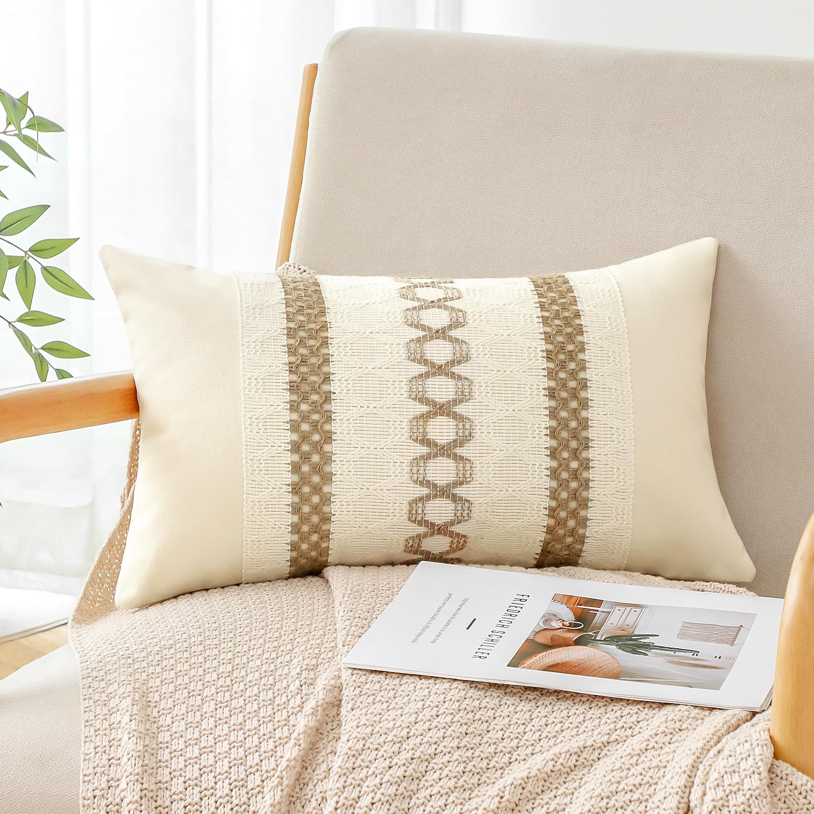 Cotton Linen Material: This throw pillow cover is made of high quality cotton and linen, well-made and of great quality. Easily match different home styles Package and Size: You will get 1 piece boho throw pillow cover in a pack. Each pillow cover is 12 x 20 inch (30 x 50cm). Because it's made by hand, there may be an error of 1 to 2cm. Note: pillow covers only, no insert Stylish Boho Pillow Cover: Cotton & burlap textured striped woven design, bring a simple and natural new style to your pillow covers. Designed for living room, bedroom, sofa, kitchen, office, cafe, balcony, garden, farmhouse, patio, car Hidden Zipper: Delicate hidden zipper closure was designed to keep an elegant look. which makes it convenient to replace or clean. And this design avoid the abrasion on the skin or sofa, suitable for daily use by kids and pets Washing Tips: Hand washable or machine washable in cold temputure, gently cycle only, tumble dry low, do not bleach or iron This stylish Boho throw pillow cover is made of high quality cotton and linen, well-made and of great quality, skin-friendly. Cotton & burlap textured striped woven design, bring a simple and natural new style to your pillow covers. Easily match different home styles. Designed for living room, bedroom, sofa, kitchen, office, cafe, balcony, garden, farmhouse, patio, car, etc. Delicate hidden zipper closure was designed to keep an elegant look. which makes it convenient to replace or clean. And this design avoid the abrasion on the skin or sofa, which caused by the exposed zipper, suitable for daily use by kids and pets.