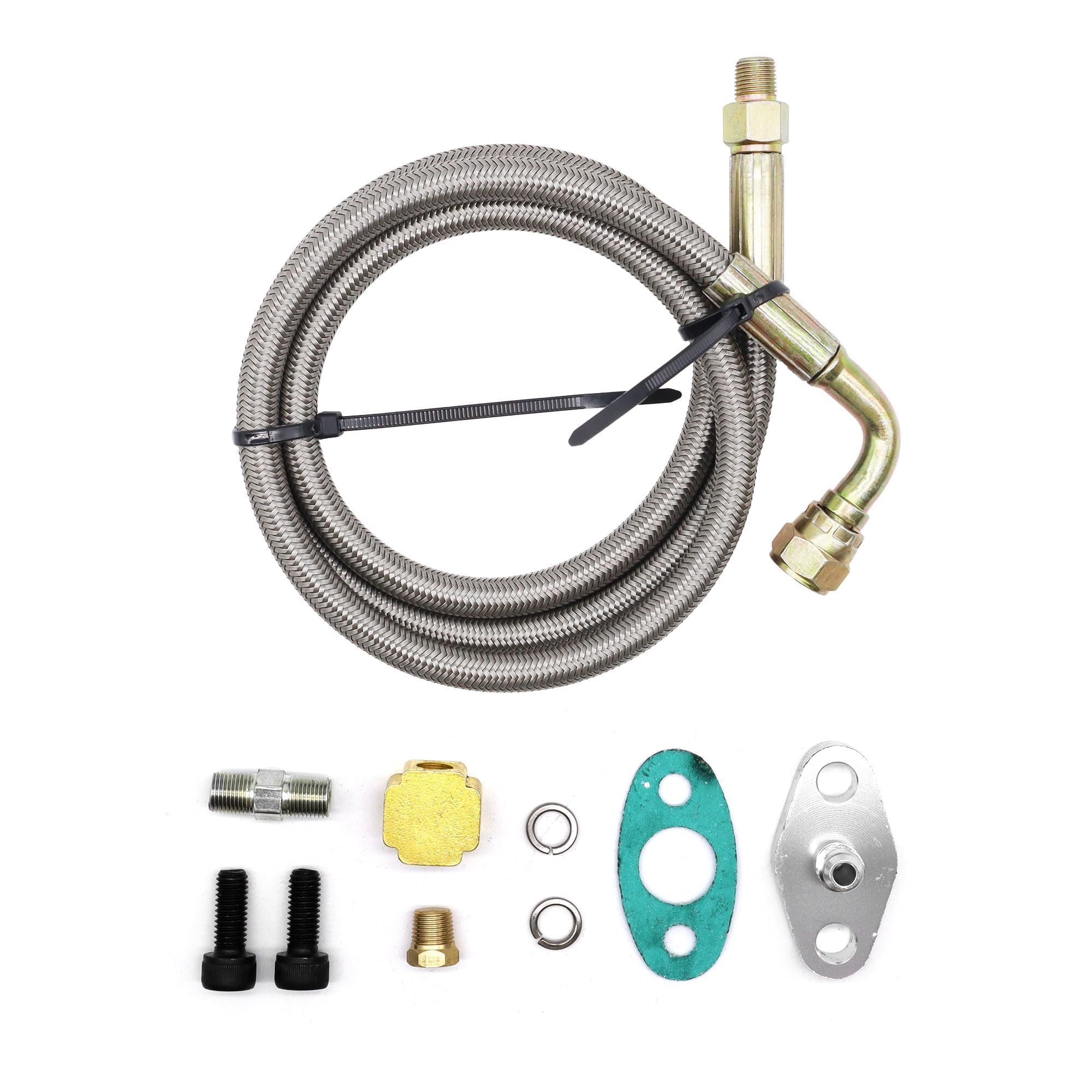 Fitment: Turbo oil feed line encore Compatible with T3 T3/T4 T4 T04 GT32 GT40 GT42 GT4088R GT4049R GT42R/RS GT4294R GT4202R T61 T66 T70 Turbocharger Material: Turbo oil line kit are made of high quality aluminum, brass and stainless steel, more robust, with better high temperature resistance, and less prone to oil leakage Purpose: Turbo inlet and drain kits are used to transfer lubricating oil between the engine turbochargers for smoother operation Benefit: 4an turbo oil feed line t3 t4 turbo oil drain outlet can help oil circulate from the sump to the turbocharger, effectively preventing oil seal rupture due to high oil pressure Easy to install: Transmission fluid oil cooler hose line kit with a full set of diverse accessories, so you can install more easily and conveniently, and save your time to a greater extent