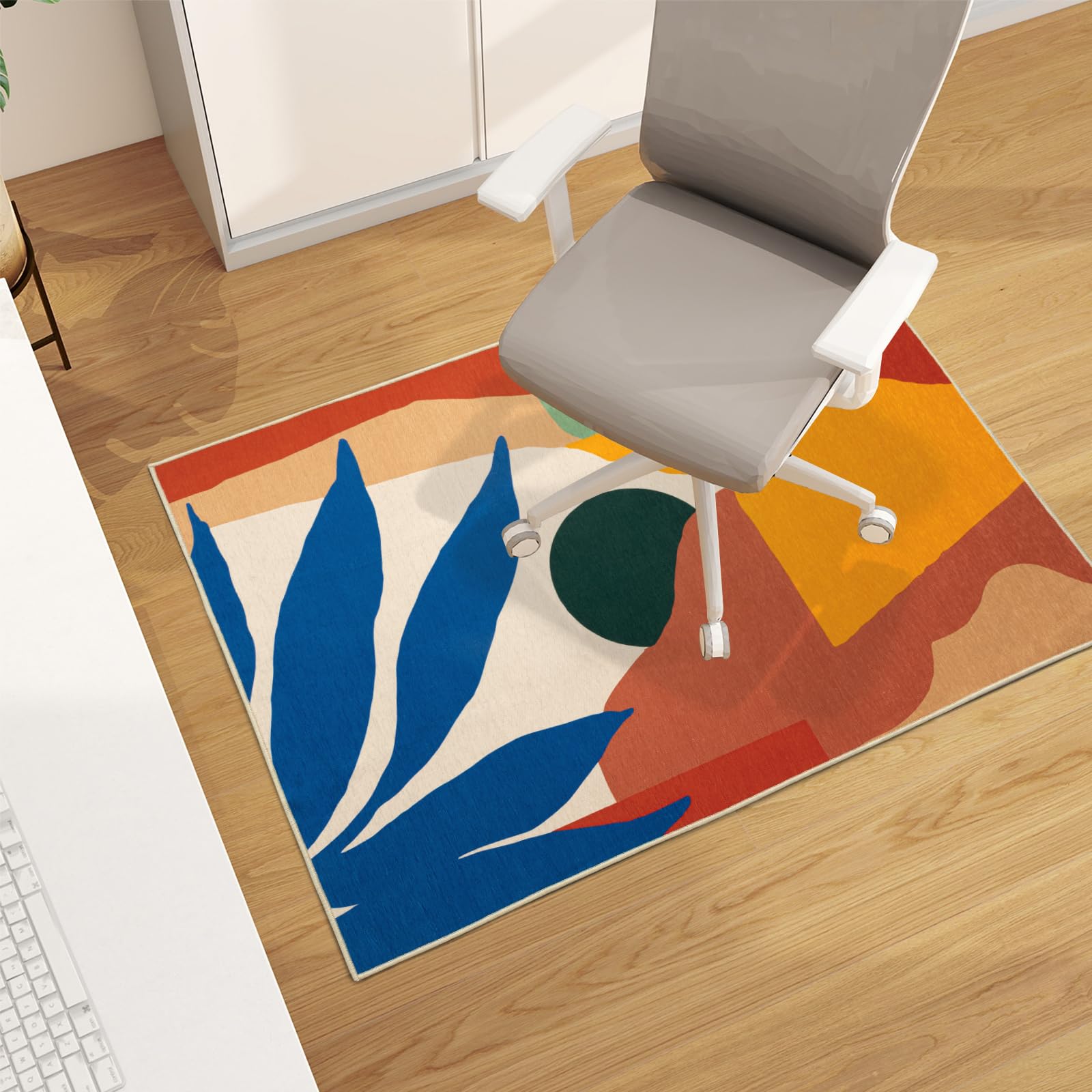 【Protect your floor】Chakme office chair mat crafted from enduring polyester and rubber, with a thickness of 0.24", it protects your hardwood floors from damage by hard chair wheels and reduces the noise of rooling chair, it used for hardwood floor,ceramic tile and laminate, Please pay attention that this office chair mat isn't suitable for carpet. 【Non-Slip & Easy to Move】 Hot melt adhesive rubber backing different from other backing, make your office chair casters to move easily, the chair mat no move and no bunching up, you can move the chair freely and work without hindrance 【Easy Care and Cleaning】This chair mat is waterproof, is effortless to keeping the surface of your office rug for chairs clean, Whether it's vacuum cleaning, brooms, rags, or washing in the washing machine, you can easily clean for it 【Stylish Chair Mat】High quality printed fabric and boho design unlike ordinary clear plastic or solid color floor mats, It adds some beauty to your home, floor, office, and adds color and classic style to your room decor 【Multi-Purpose Comfort】it will perfectly match any kinds of rooms, you can use it in your work area or as a carpet, and it will bring a unique style to your home (Note: there may be slight creases when first used, it is recommended to roll the mat in the opposite direction and allowing it to sit for a few hours to allow it to lay flat. ) Office Chair Mat for Hardwood Floor, 48"x37" Desk Chair Mat for Hardwood Floor, Easy Glide Computer Chair Mat Protector for Rolling Chair Under Desk Rug Nonslip Backing, Modern Chair Mat