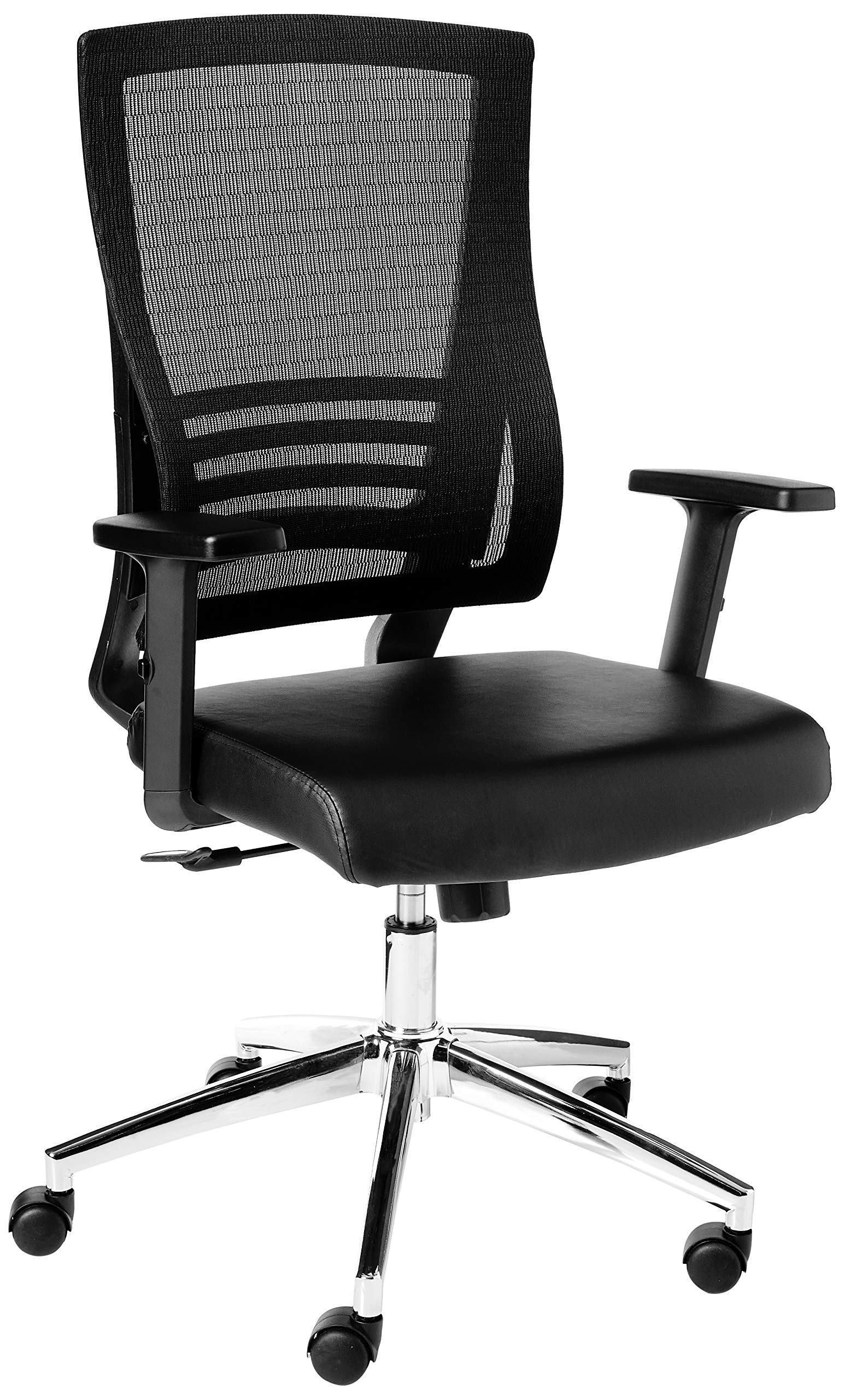 On-trend and handsome, our Air Mesh Back Office Chair from Office Star is an essential choice for every workspace Overall Size: 28” W x 25” D x 41.25-44.25” H; Seat Size: 19.5” W x 19.25” D x 3” T; Back Size: 18.25” W x 23.5” H Its modern, sleek profile makes this an attractive way to ensure daily comfort with one-touch pneumatic seat height adjustment and 2-to-1 synchro tilt control with adjustable tilt tension Approved for commercial use Crafted with a durable chrome finish base and dual-wheel casters perfect for carpet, this stylish chair is ready to roll