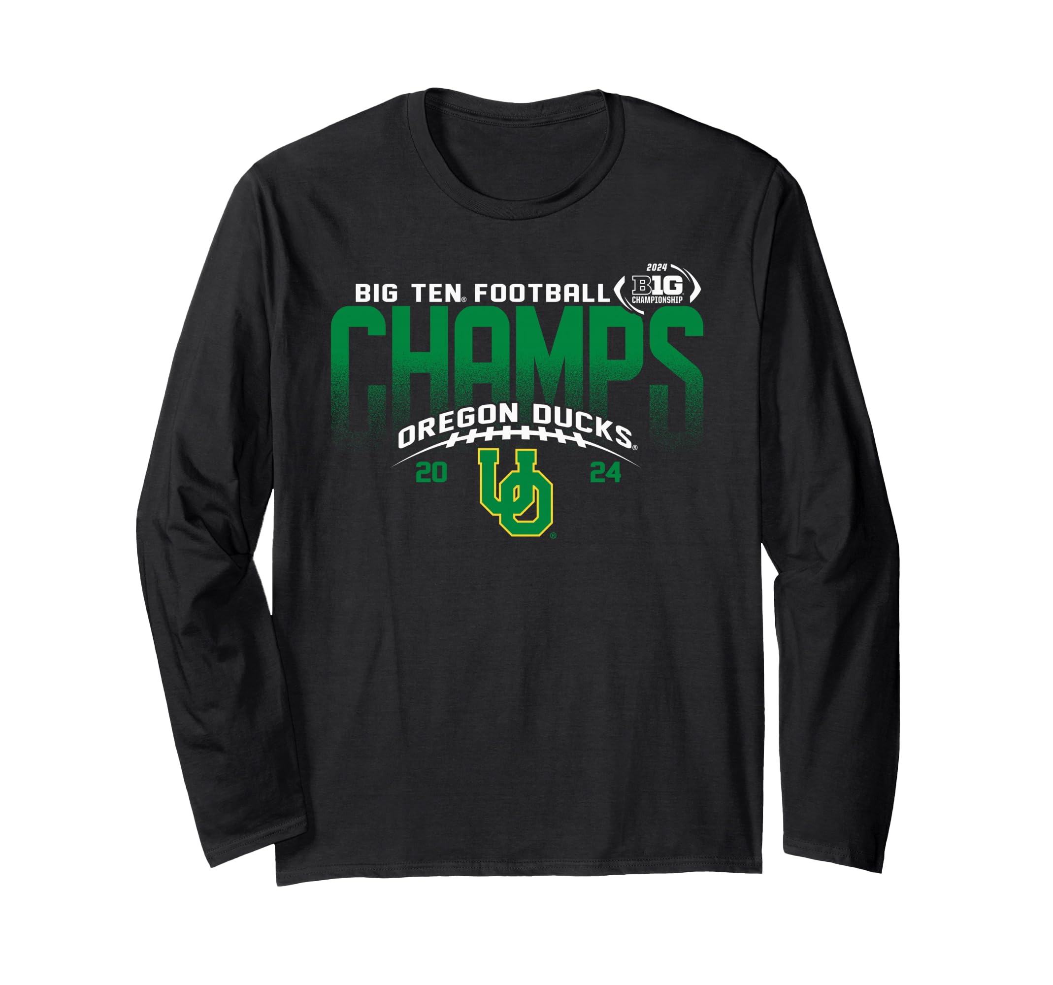 Big Ten Championship design. Officially Licensed Big Ten 2024 Champions apparel. Show your support for Oregon with this conference champions apparel! The soft material and digitally printed logo make this a great addition to any Ducks apparel collection! Celebrate a great football season for the Oregon Ducks with this 2024 Big 10 Conference Champs apparel. Lightweight, Classic fit, Double-needle sleeve and bottom hem