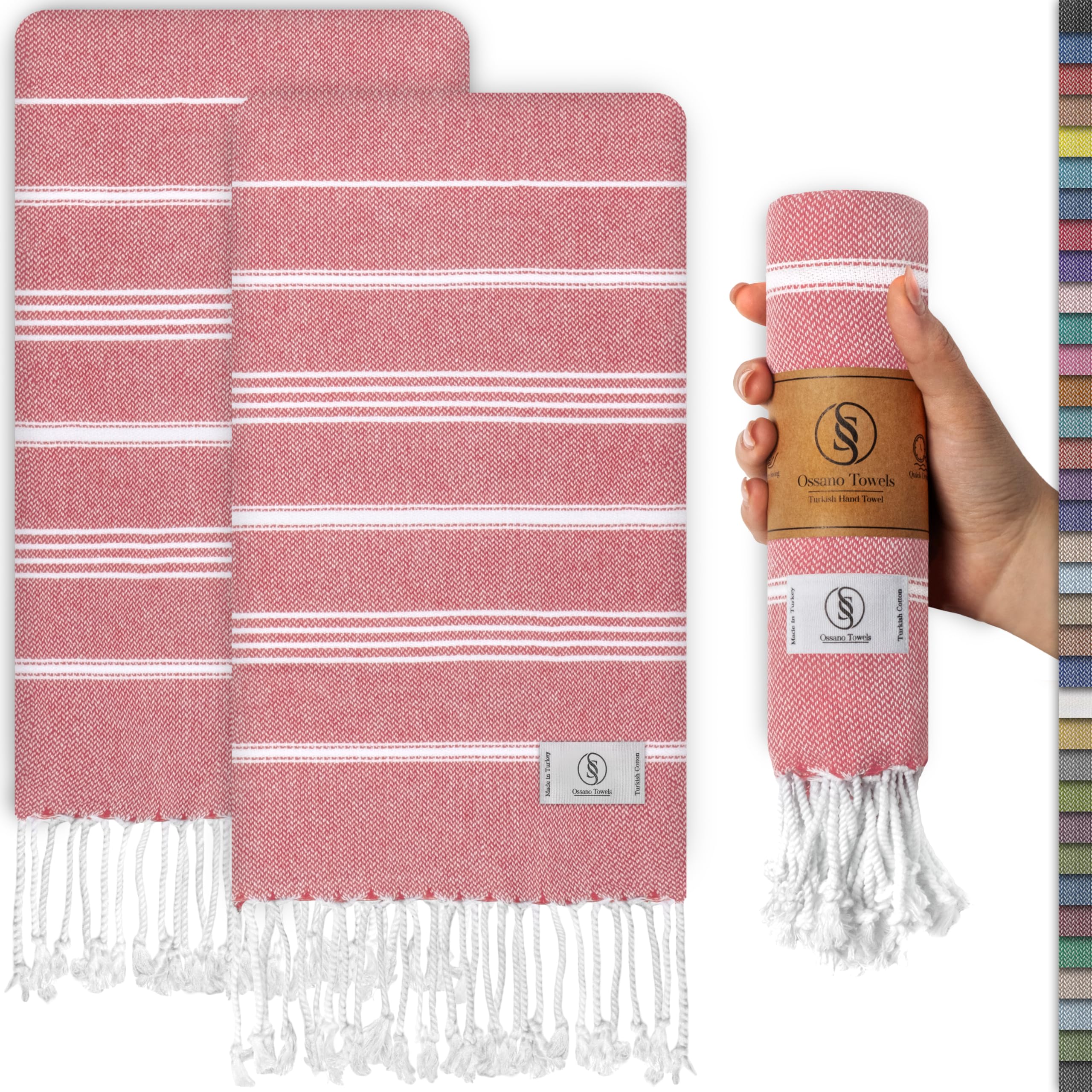 Ossano Decorative Turkish Hand Towels - Thin & Cute - Set of 2 (30" x 18") - for Kitchen & Powder Room - Multifunctional as - Western Hand Towels,