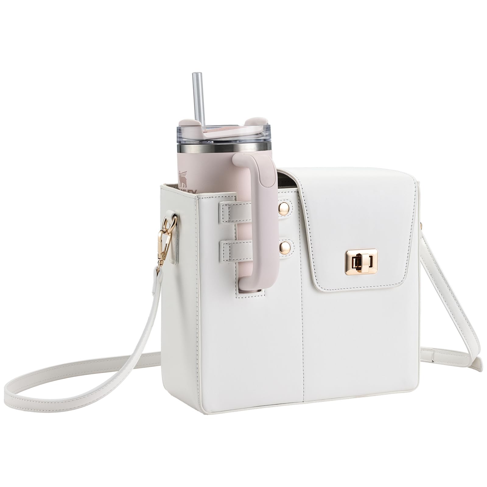 Fashionable Appearance: The innovative purse designed with a dedicated water bottle pocket offers a seamless blend of chic aesthetics and practicality. This accessory, adorned with gentle hues, effortlessly complements a wide array of outfits, making it an ideal choice for both casual outings and professional engagements. PU Leather: Constructed from high-quality leather fabric, this crossbody bag stands out for its superior durability and lightweight composition. Such characteristics render it a perfect companion for the myriad of demands encountered in day-to-day life, enhancing one's stylish lifestyle without sacrificing ease of use. Fits Most Size Cup: One of the standout features of this purse is its compatibility with various cup sizes, accommodating a wide range of hydration vessels while ensuring ease of placement. The clever design includes a handle securing strap, which mitigates the risk of spills, thereby offering a practical solution for maintaining one's essential hydration throughout busy days. Multi-Functional Storage: The water bottle crossbody bag offers excellent storage options with its versatile compartment. It includes built-in card clips, zippered pockets, and removable dividers, allowing users to neatly organize small items such as IDs, credit cards, work badges, and personal items like chapstick and headphones. The removable divider adds flexibility, making it easier to store larger items when needed. Various Activities: This stylish water bottle carrier is designed for 30oz and 40oz tumblers, making it a multifunctional accessory for a variety of activities like walking, yoga, CrossFit, biking, camping, and trips to the beach. It’s also a great gift for occasions such as Valentine's Day, birthdays, or Christmas, perfect for anyone who enjoys staying hydrated. This crossbody bag combines convenience with style, highlighting the balance between fashion and practicality in everyday life. Various Activities: This stylish water bottle carrier is designed for 30oz and 40oz tumblers, making it a multifunctional accessory for a variety of activities like walking, yoga, CrossFit, biking, camping, and trips to the beach. It’s also a great gift for occasions such as Valentine's Day, birthdays, or Christmas, perfect for anyone who enjoys staying hydrated. This crossbody bag combines convenience with style, highlighting the balance between fashion and practicality in everyday life. Outdoor Portable Crossbody Water Cup Storage Bag Crossbody Case with Sports Water Bottle Holder for Women Tumbler Purse with Water Bottle Pocket Compatible with Most Water Bottles Carrier Bag, White