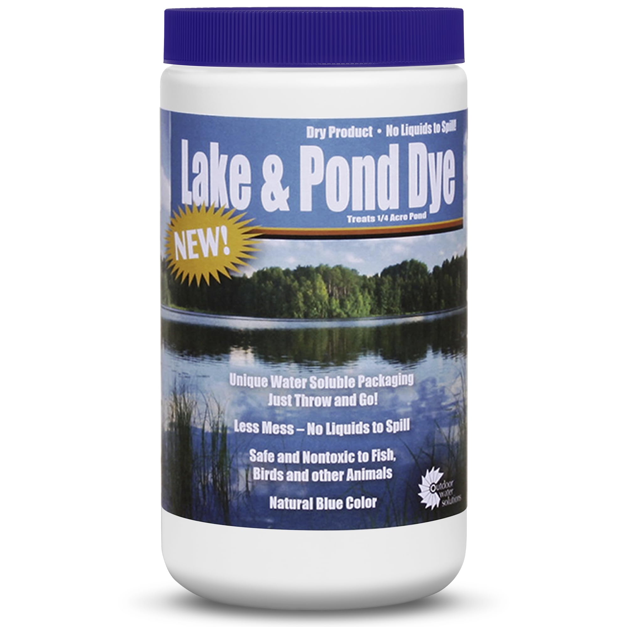 SAFE & NON-TOXIC FOR WILDLIFE: Formulated to be safe for fish, birds, pets, and other aquatic life. This dry pond dye offers effective pond coloring without harming your ecosystem. NO LIQUID, NO MESS - JUST THROW & GO: No measuring, no pouring, no spills. These water-soluble packs dissolve quickly and evenly—just toss directly into the pond and let it work its magic. ENHANCES WATER APPEARANCE & CLARITY: Revitalize your pond with a vibrant, natural blue color. The dye improves water clarity and gives your pond a clean, polished look that blends beautifully with outdoor surroundings. UV PROTECTION : Provides essential shading that helps limit sunlight penetration, helps to maintain healthier aquatic environment. TREATS UP TO ¼ ACRE PER PACK: Each convenient pack treats up to 1/4 surface acre of water. Ideal for small ponds, decorative water features, and backyard landscapes.