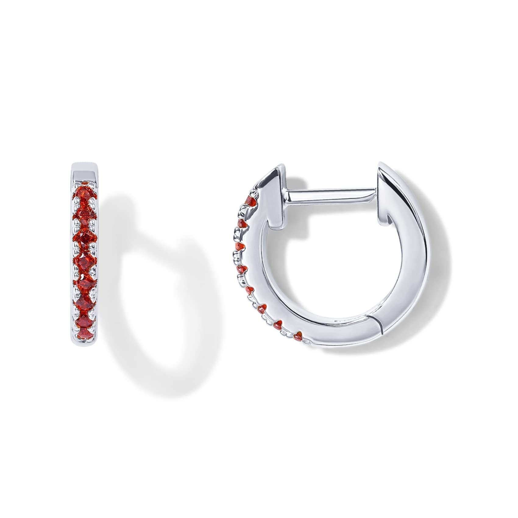 At just under 1/2" in diameter, our fun, colorful white gold huggies are a perfect way to level up your ear stack game and can be worn in your earlobe, cartilage, helix, and more. These Rhodium plated huggies for women feature Solid 925 sterling silver posts and high quality garnet color AAAAA pave CZ for long lasting, everyday wear. OUR SATISFACTION PROMISE: Your happiness is our number one priority. If you're not loving your product, let us know within 60 days so we can make it right! To get in touch, email or chat with us - a member of our team will be happy to help. SUSTAINABILITY: PAVOI is dedicated to sustainability throughout our entire product cycle. Our jewelry is made from 100% recycled materials and we package in 99% recycled materials. We work to reduce our carbon emissions and offset plastic consumption by removing 275,000 bottles from oceans annually. We are committed to maintaining a business that minimizes our environmental impact. PROUDLY AMERICAN-OWNED If there is one trend that you Need to jump on the bandwagon for, it’s chunky earrings. These earrings are so perfectly thick, beautiful, and everything you need in a earring. Pop these on with absolutely anything and completely transform your look. We're all about making quality, sustainable jewelry that you can wear every day.